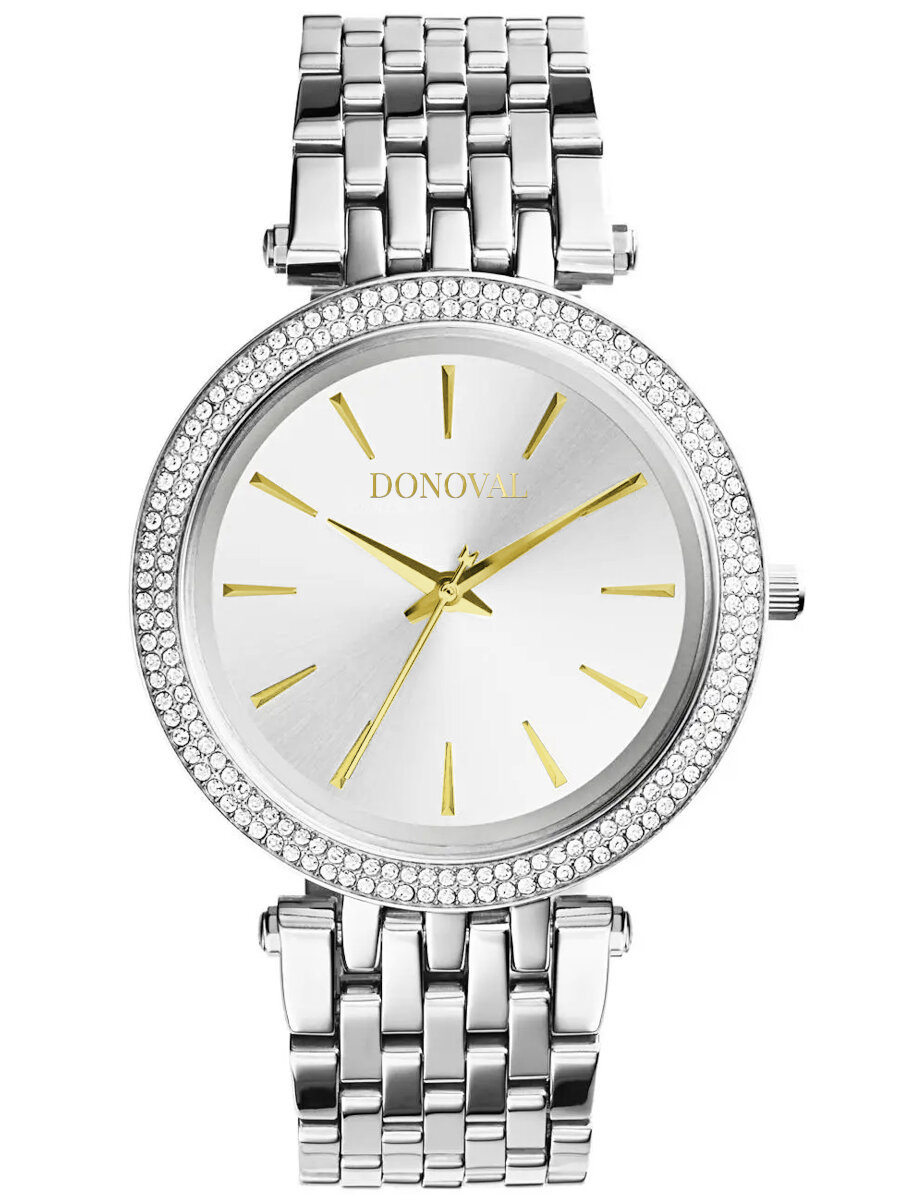 The Donoval Just Lady DL0031 watch is a classic women's timepiece, ideal for both elegant attire and casual wear. The model features an accurate battery-powered quartz movement. The stylish silver-colored dial is protected by scratch-resistant mineral glass.