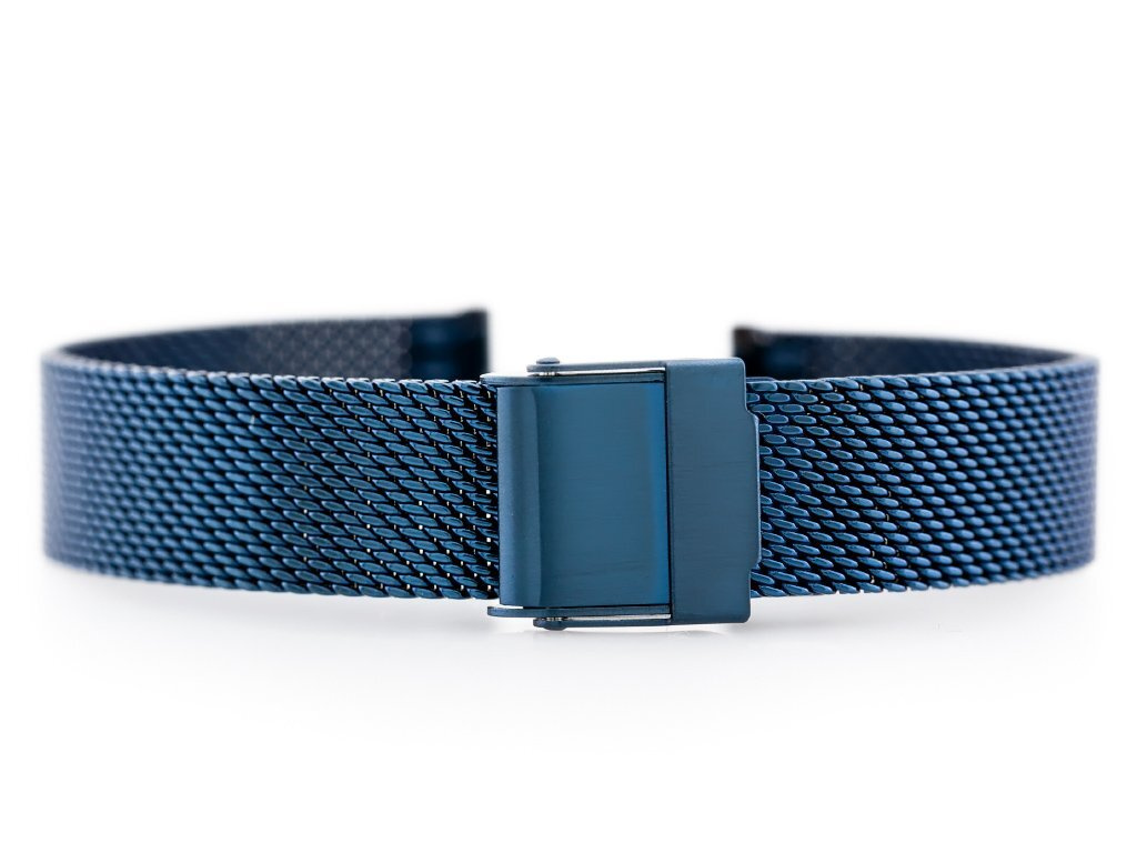 High quality steel 'mesh' type watch bracelet in navy blue color. PVD-coated