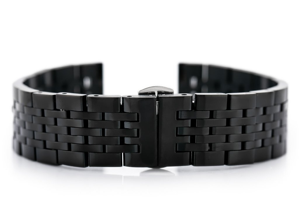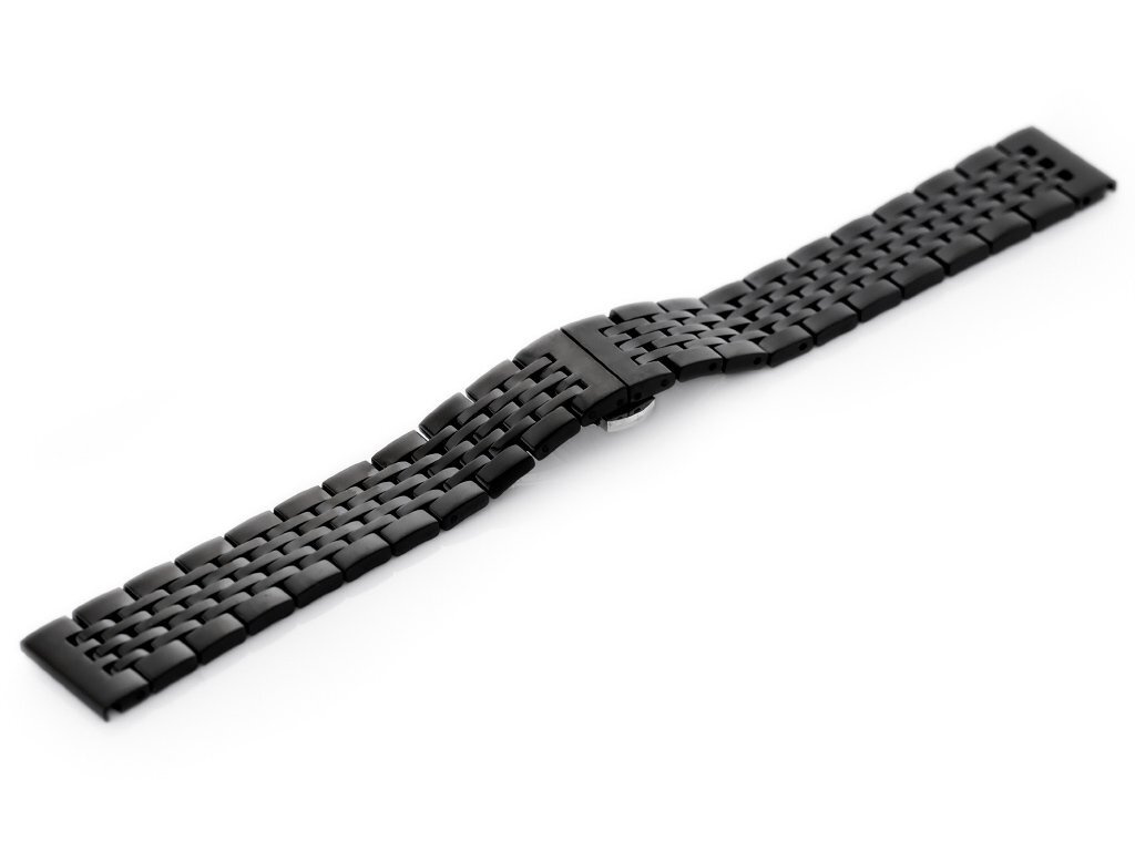 Steel bracelet with butterfly clasp for high quality watch in black color.