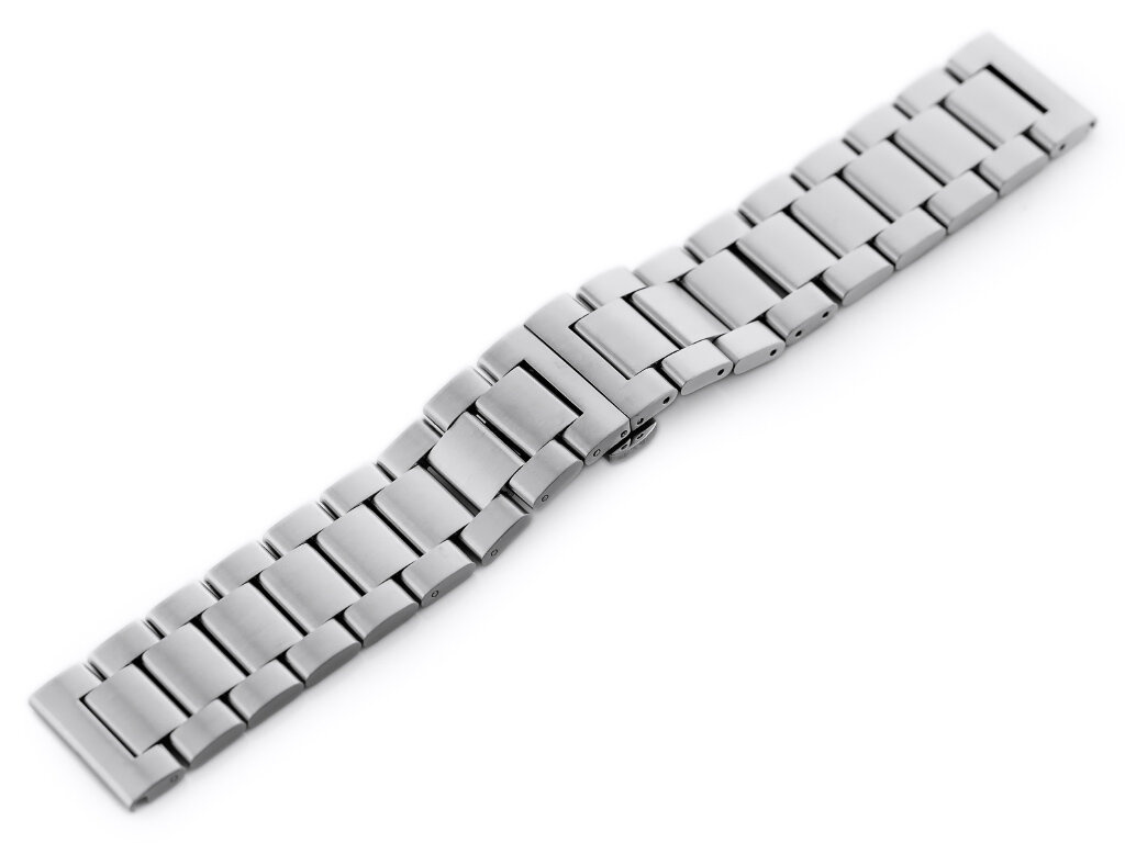 Steel bracelet with butterfly clasp for high quality watch in silver color.