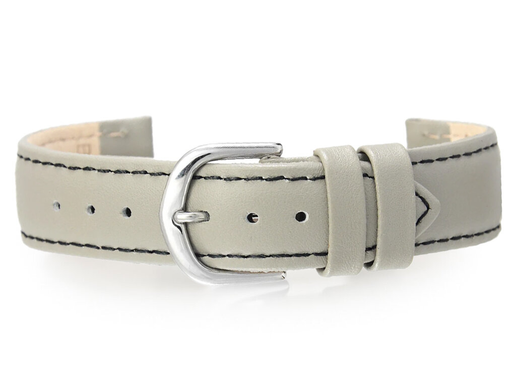 Natural leather belt in gray color with gray stitching. Stainless steel buckle in silver color.