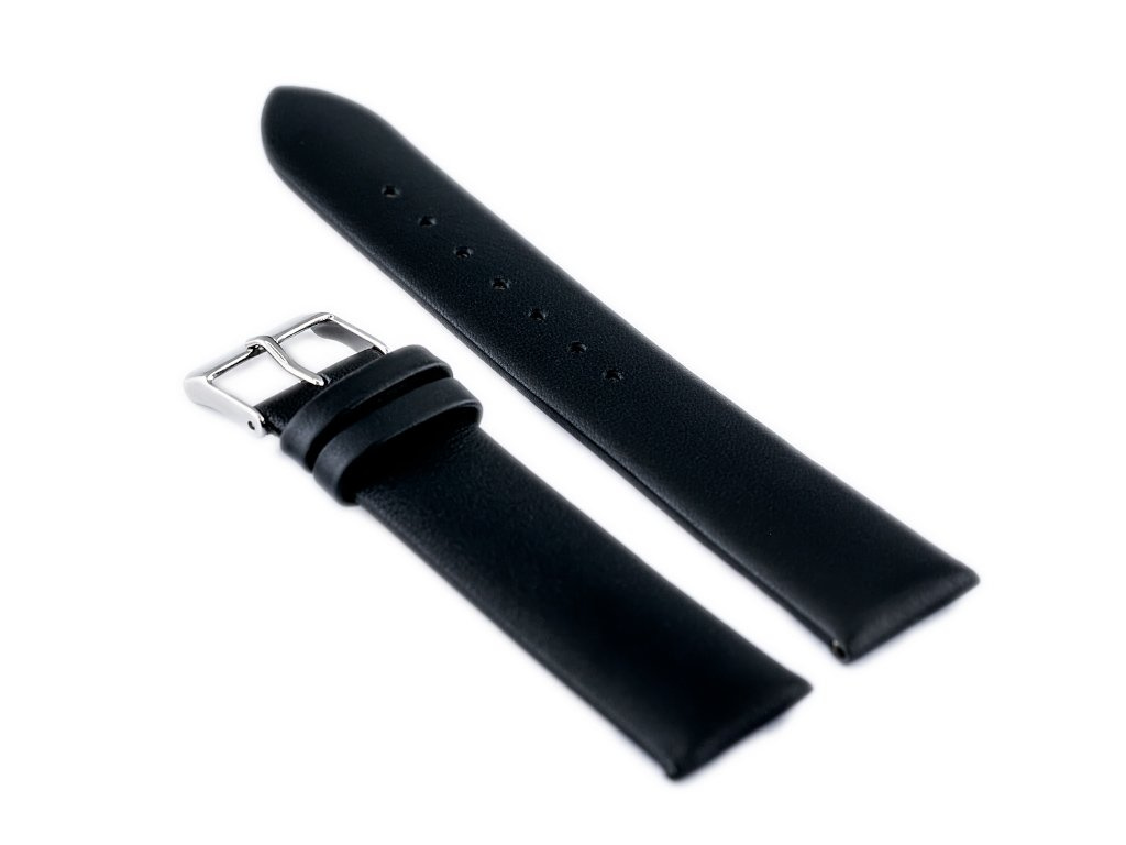 Pasek ze skóry naturalnej w kolorze czarnym. Klamerka ze stali szlachetnej w kolorze srebrnym.