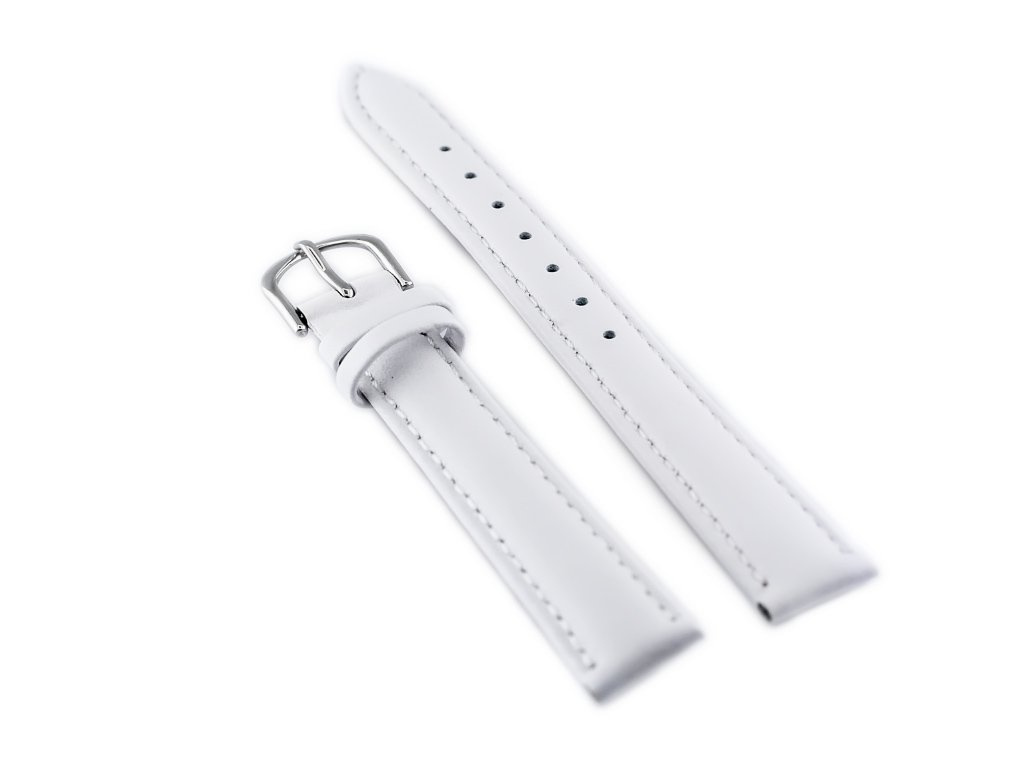 Pasek ze skóry naturalnej w kolorze białym z białymi przeszyciami. Klamerka ze stali szlachetnej w kolorze srebrnym.