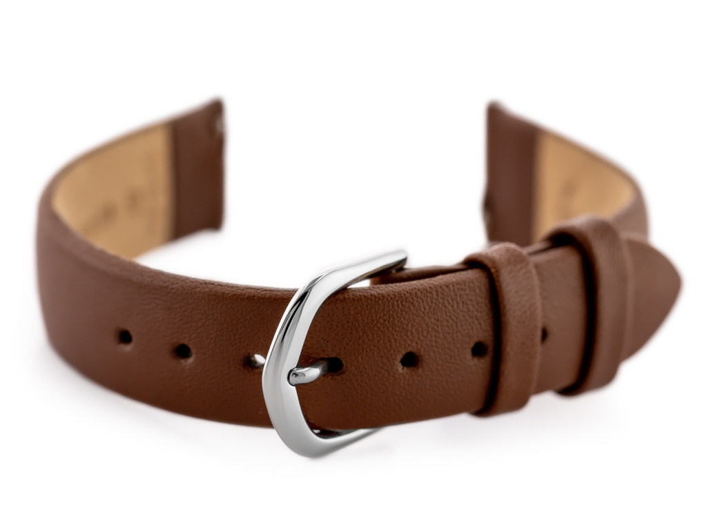 Strap made of natural leather in dark brown color. Stainless steel buckle in silver color.