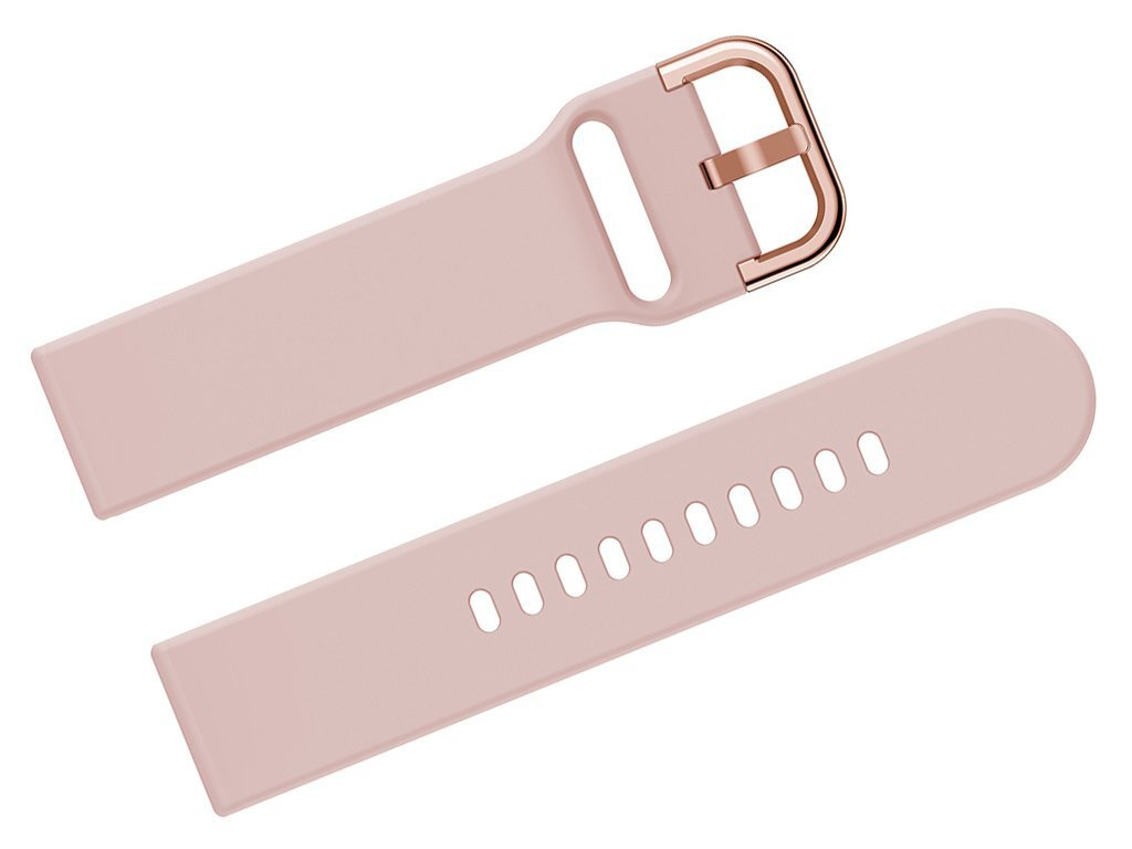 Rosegold colored rubber strap. Rosegold colored metal buckle.