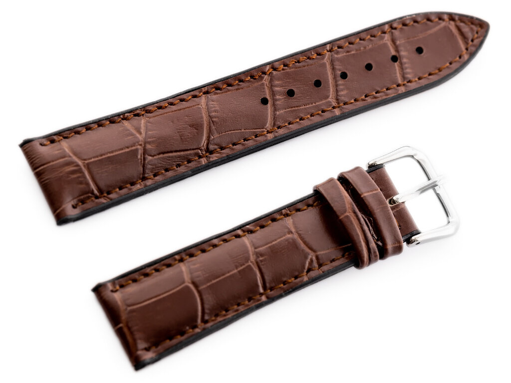 Black-brown colored rubber strap with leather top, stitched with brown thread.