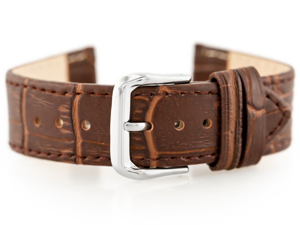 Natural leather belt in dark brown color with dark brown stitching. Silver-colored metal buckle.