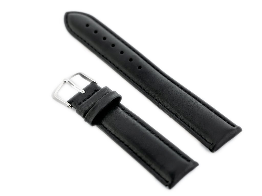 Natural leather belt in black with black stitching. Silver-colored metal buckle.