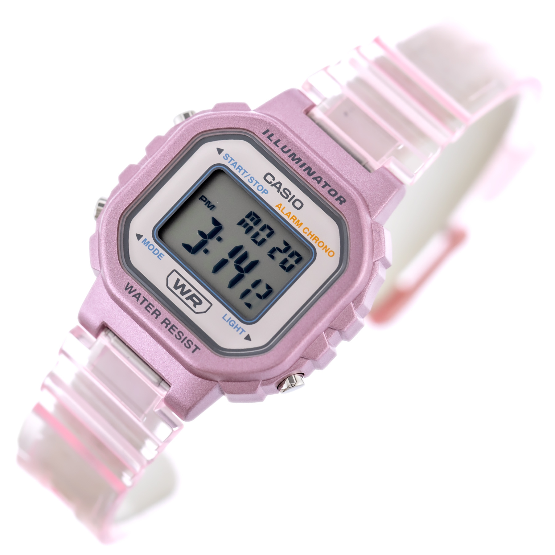 The watch strap, made of soft and flexible plastic, is not only comfortable, but also easy to adjust, allowing you to perfectly fit the watch to the little wrist. Its pink color scheme blends harmoniously with the envelope, creating a consistent and aesthetically pleasing look. CASIO LA-20WHS-4A is more than a watch - it is the first step into the world of adulthood, which teaches responsibility and punctuality, but at the same time remains a cheerful and colorful addition to children's styling. It's the perfect gift for a child who wants to feel special and independent while carrying a reliable timepiece from the well-known and respected CASIO brand.