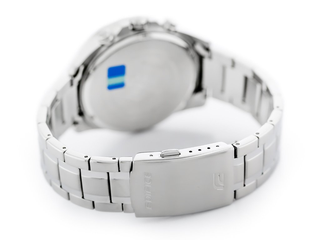 The CASIO EDIFICE EFR-552D-1A is a watch that perfectly combines durability and elegance. Its water resistance of up to 100M makes it resistant to splashes and submersion in water, making it the perfect everyday companion - whether you're at work, working out or on a weekend getaway. The sturdy silver-colored stainless steel bracelet blends perfectly with the envelope, creating a cohesive, harmonious whole, which attracts attention with its interesting design and class. The bracelet not only adds a sophisticated touch to the watch, but also ensures comfortable all-day wear thanks to its refined clasp system.