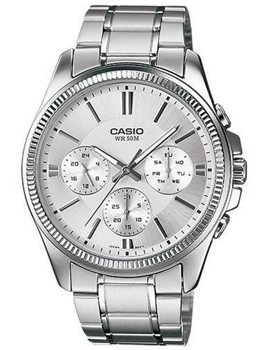 The Casio MTP-1375D 7A2VDF watch is a model that combines elegant design with reliable functions, ideal for men who appreciate modern design and practicality. Its elegant silver-tone dial, which subtly contrasts with the hands and indexes, gives it a sophisticated character that perfectly matches both casual and formal styling. In addition, the elegant steel envelope and bracelet make the watch look unique, and its finishing demonstrates attention to detail and high quality workmanship.