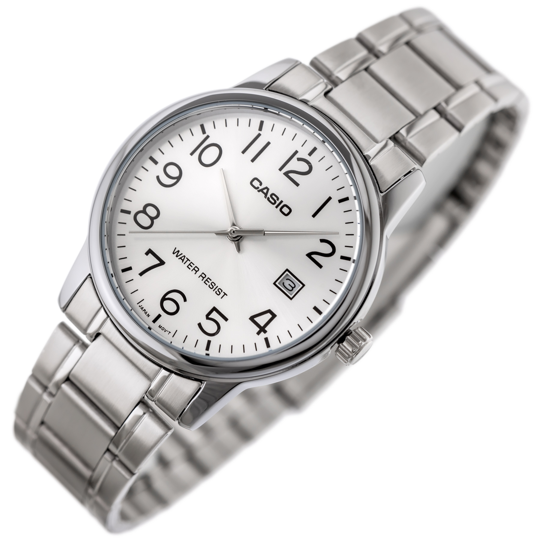 The Casio MTP-V002D-7BUDF watch is an excellent choice for men who appreciate timeless design and reliability. Its precise quartz movement guarantees the reliability that the Casio brand offers, making the watch perform in all conditions. Thanks to its classic silver dial with clear indexes and silver hands, the watch combines elegance with simplicity, providing excellent legibility and comfort.