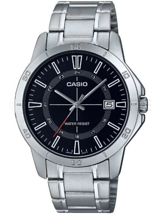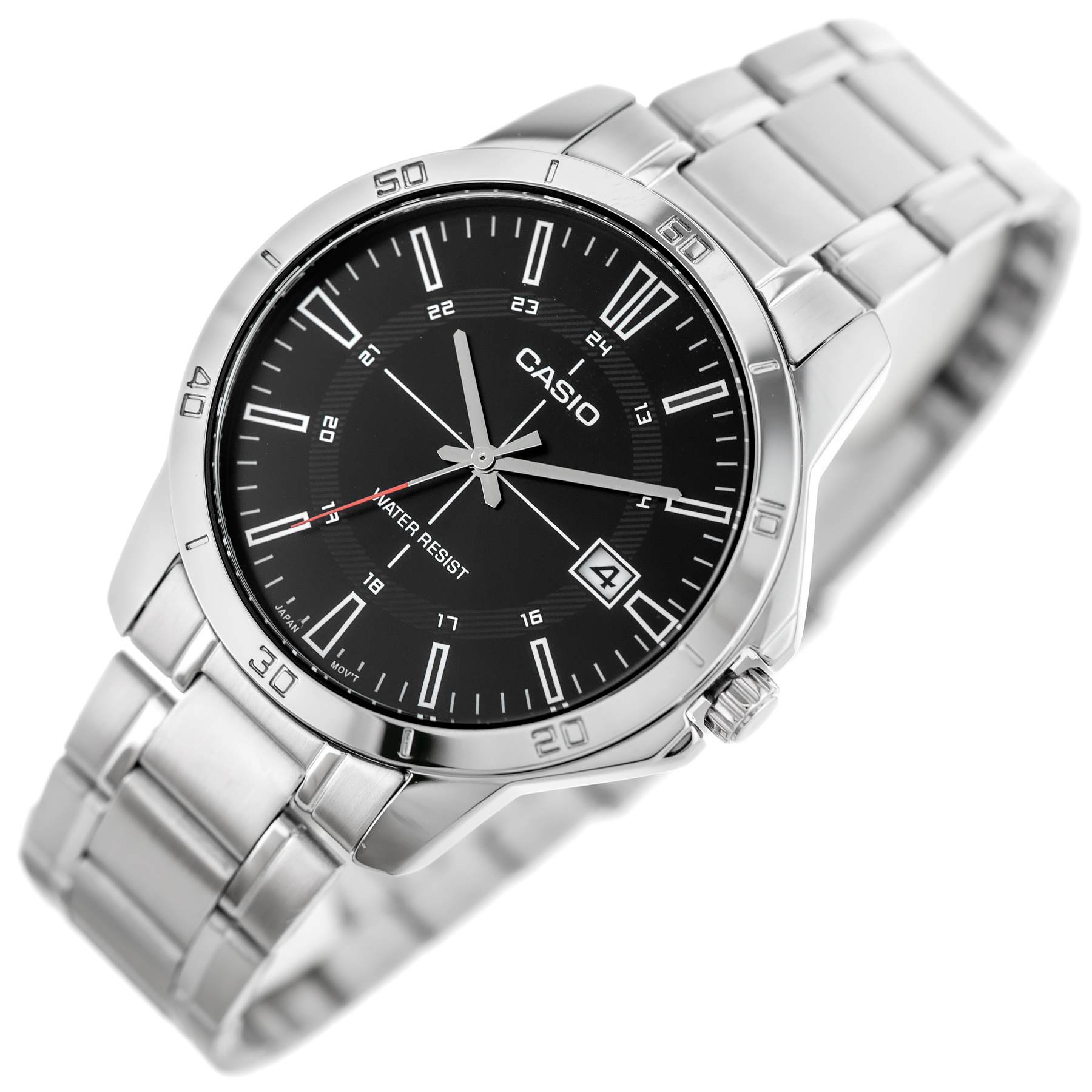 The Casio MTP-V004D-1CUDF men's watch is an elegant choice for men who appreciate timeless style and reliability. Its bracelet and envelope are made of high-quality silver-colored stainless steel, ensuring both durability and an elegant look. The black dial of the watch complements the classic design, giving it a subtle yet distinctive aesthetic.