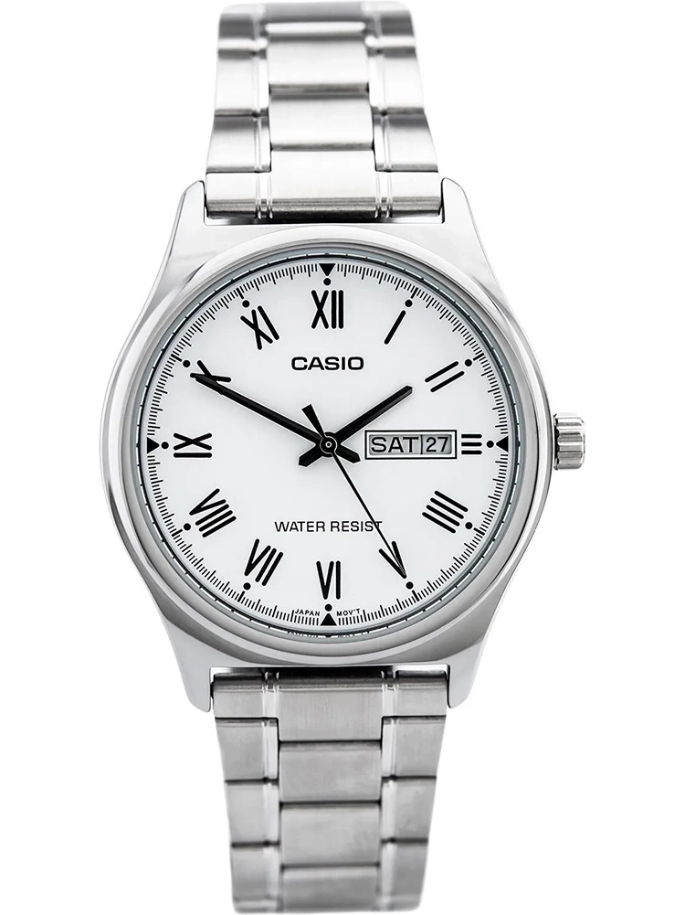 The Casio MTP-V006D-7B men's watch is an elegant and timeless timepiece that combines classic design with reliable functionality. Its subtle yet distinctive aesthetics make it an ideal choice for both everyday wear and special occasions. With a white dial adorned with delicate black indexes and silver hands, the watch exudes simplicity yet elegance. The minimalist design makes the Casio MTP-V006D-7B match both a suit and more casual outfits, becoming the perfect complement to everyday outfits.