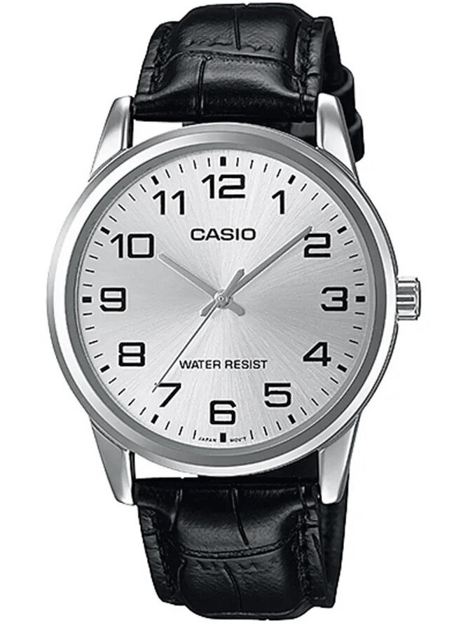 The Casio MTP-V001L-7B comes with a leather strap for comfortable all-day wear. Thanks to its universal size, it fits perfectly on the wrist, combining comfort with elegance. It is the perfect choice for men who want to carry a watch that combines style, functionality and durability in one.