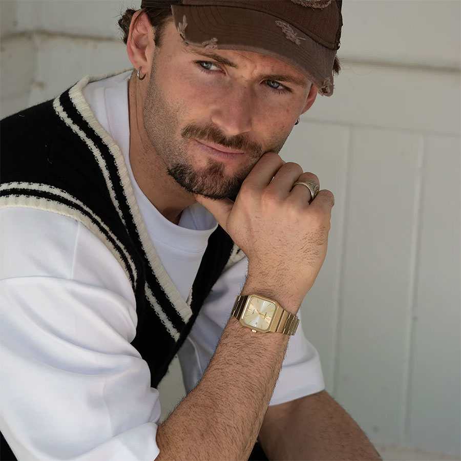 Koperta zegarka została wykonana ze stali szlachetnej, co gwarantuje trwałość i odporność na uszkodzenia mechaniczne. Złota tarcza z datownikiem dodaje zegarkowi subtelnej elegancji. Klasyczna bransoleta ze stali szlachetnej z zapięciem zatrzaskowym zapewnia wygodę noszenia oraz dopasowanie do różnych rozmiarów nadgarstka.