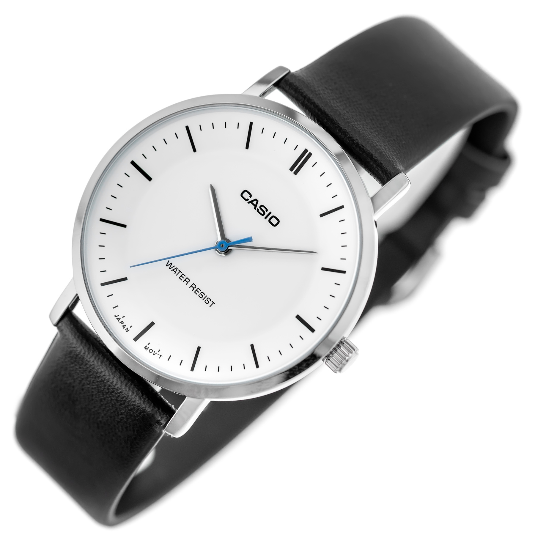 Wykonany z wysokiej jakości materiałów, MTP-VT04L-7E jest nie tylko stylowy, ale także wyjątkowo trwały i komfortowy w noszeniu. Jego solidna koperta ze stali szlachetnej oraz wygodny skórzany pasek zapewnia idealne dopasowanie do nadgarstka, a jednocześnie jest wygodny, przez co nadaje się do codziennego użytkowania. Wodoszczelność do 30 metrów (3 ATM) sprawia, że zegarek jest gotowy na codzienne wyzwania – czy to podczas deszczu, czy przy okazji szybkiego prysznica. To praktyczny wybór dla mężczyzn, którzy cenią sobie niezawodność.
