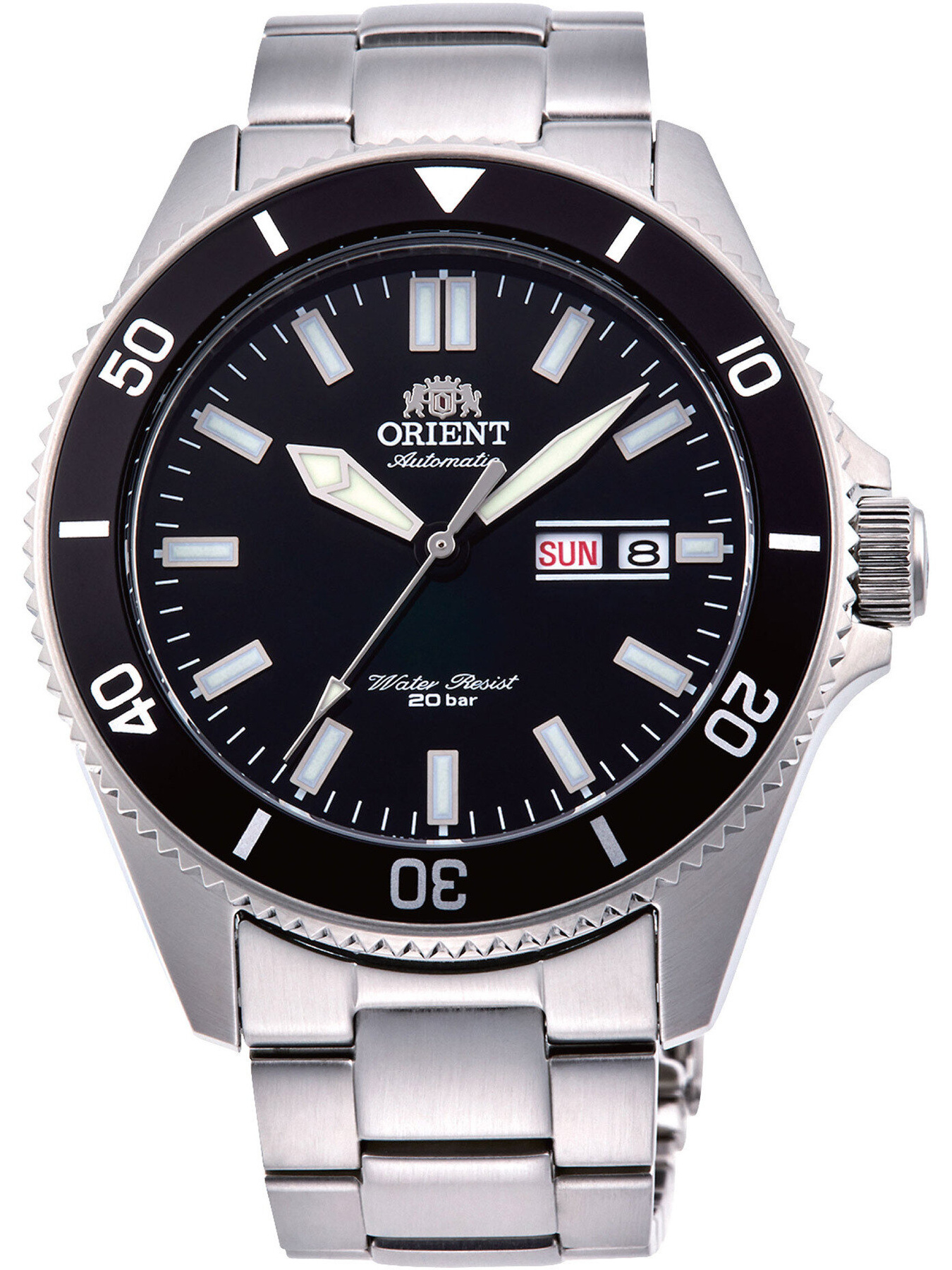 Orient Kano RA-AA0008B19B is a classic men's watch. The timepiece operates on the basis of an incredibly accurate Japanese automatic-winding mechanism. The black dial protected by mineral glass features date hands