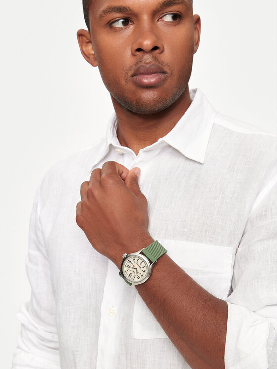 Timex Expedition Scout TW4B30100 is a men's watch designed for outdoor adventure enthusiasts. Equipped with a high-precision quartz movement, it ensures reliability and accuracy, while additional features such as a date and 24-hour time add to its practicality. The beige dial with an easy-to-read numerals, covered with Indiglo technology, allows you to read the time comfortably in the dark. The durable rubber strap and water resistance up to 5 ATM make the watch perfect for all conditions, ensuring everyday reliability.