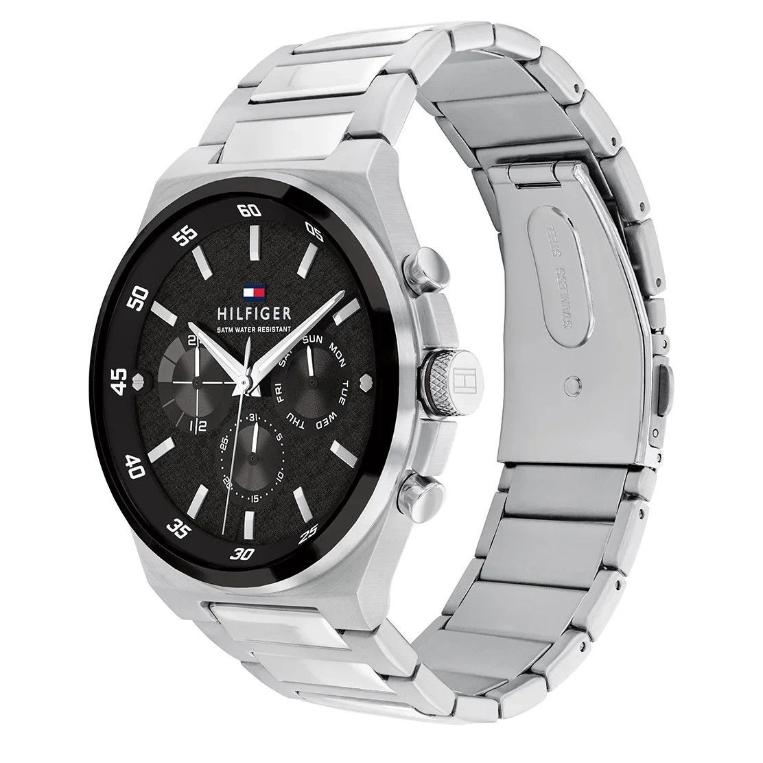 TOMMY HILFIGER DEXTER 1792087 men's watch is a modern and elegant model for everyday wear. The envelope and bracelet made of high-grade 316L stainless steel, corrosion-resistant and hypoallergenic in silver. On the classic black dial, with sunray cut, there are sub-dials indicating: day of the month, day of the week and 24-hour time. The whole thing is protected by mineral glass. For timekeeping in the Tommy Hilfiger DEXTER 1792087 watch is responsible for the quartz mechanism, for which the energy that powers it comes from a battery. The DEXTER 1792087 model has a water resistance of 5ATM, which makes it slightly resistant to water. The whole thing has been refined to the smallest detail and designed in accordance with the current fashion trends, getting a classic yet elegant watch.