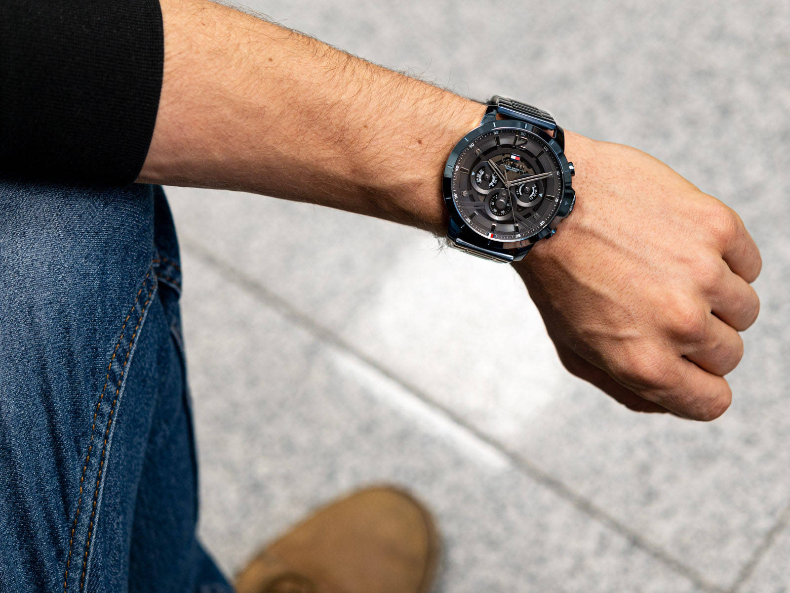 Tommy Hilfiger LUCA 1710493 men's watch is a fashionable casual style model that goes with many styles. The blue-colored envelope and bracelet made of strong stainless steel is corrosion-resistant, the mineral glass on the dial is highly resistant to breakage and scratches. The black dial is equipped with functional sub-dials for 24-hour time, day of the week date and day of the month date. The water resistance of the watch is at 5 ATM, you can safely bathe with it.