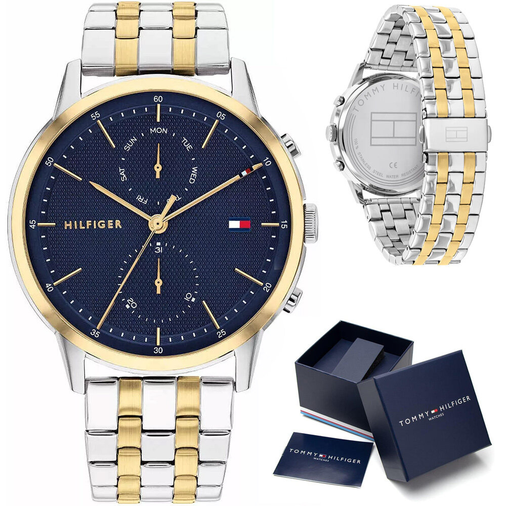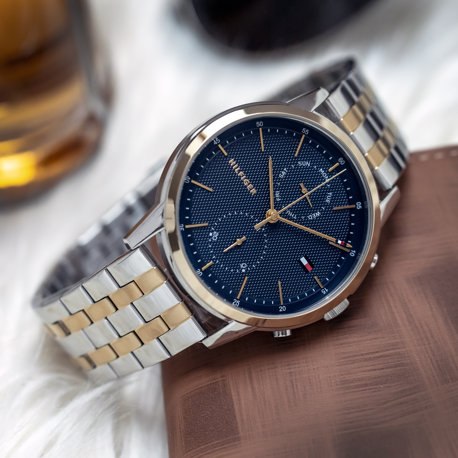 TOMMY HILFIGER 1710432 Easton men's watch is a modern and elegant model for everyday wear, as well as for special occasions. The envelope and bracelet made of high-grade 316L stainless steel, corrosion-resistant and hypoallergenic in a color combination of gold and silver. On the elegant navy blue dial, there are sub-dials indicating: the day of the month and the day of the week. The whole thing is protected by mineral glass. A quartz movement is responsible for timekeeping in the Tommy Hilfiger 1710432 Easton watch. The 1710432 Easton has a water resistance of 5ATM, which makes it slightly resistant to water. The whole thing has been refined to the smallest detail and designed in accordance with the current fashion trends, getting a classic yet elegant watch.