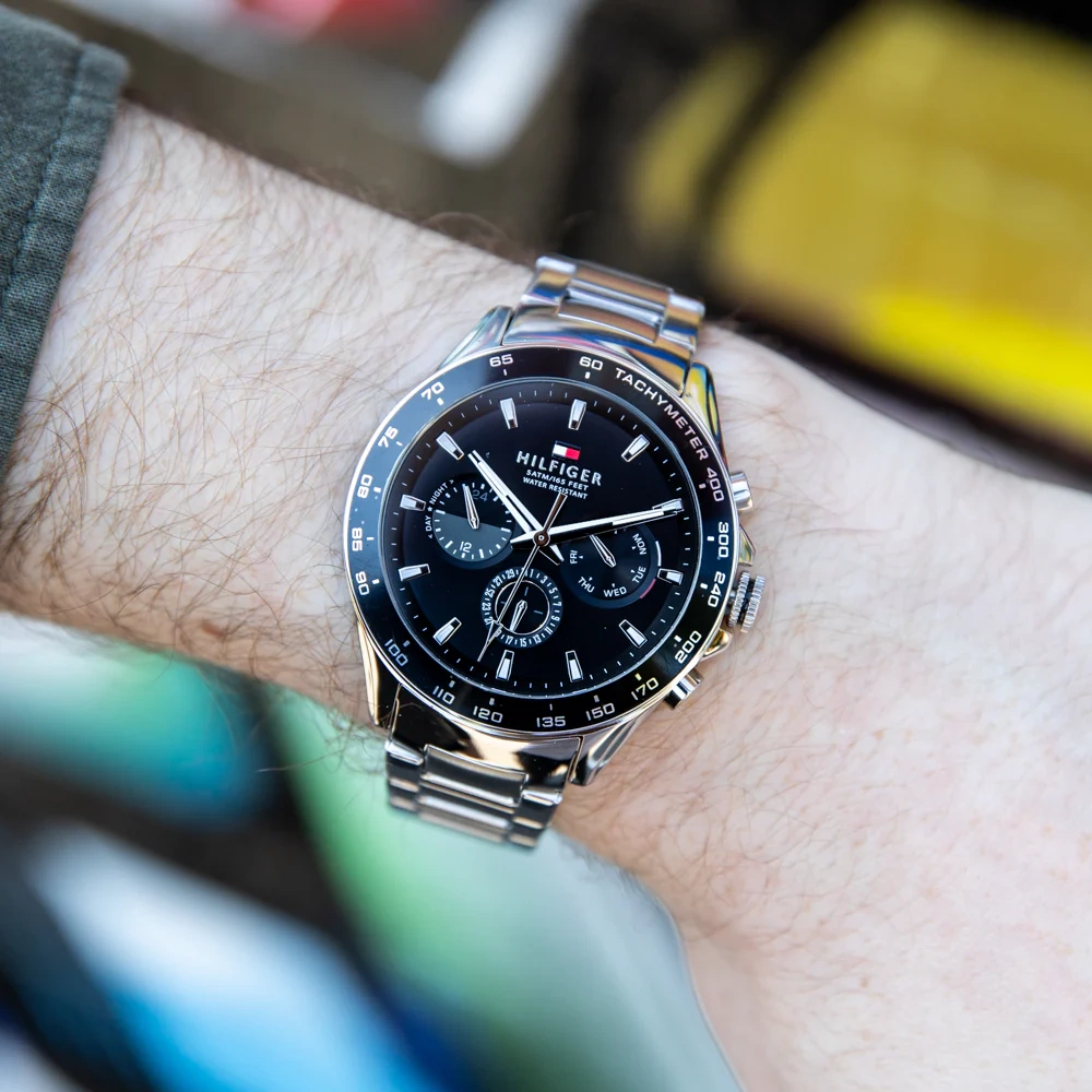 Zegarek męski TOMMY HILFIGER OWEN 1791967 model tego zegarka to doskonały wybór do codziennych oraz eleganckich stylizacji. Nowoczesny design daje szerokie pole manewru z kolorystyką i charakterem strojów, do których zostanie dobrany. Ten model posiada stylową kopertę w srebrnym kolorze. Tarcza w kolorze czarnym wykonana wysokiej klasy stali szlachetnej, odpornej na korozję. Urządzenie wyposażono dodatkowo w sub-tarcze czasu 24h, tachymetr oraz luminescencyjne wskazówki i indeksy, umożliwiające odczytanie godziny nawet nocą.
