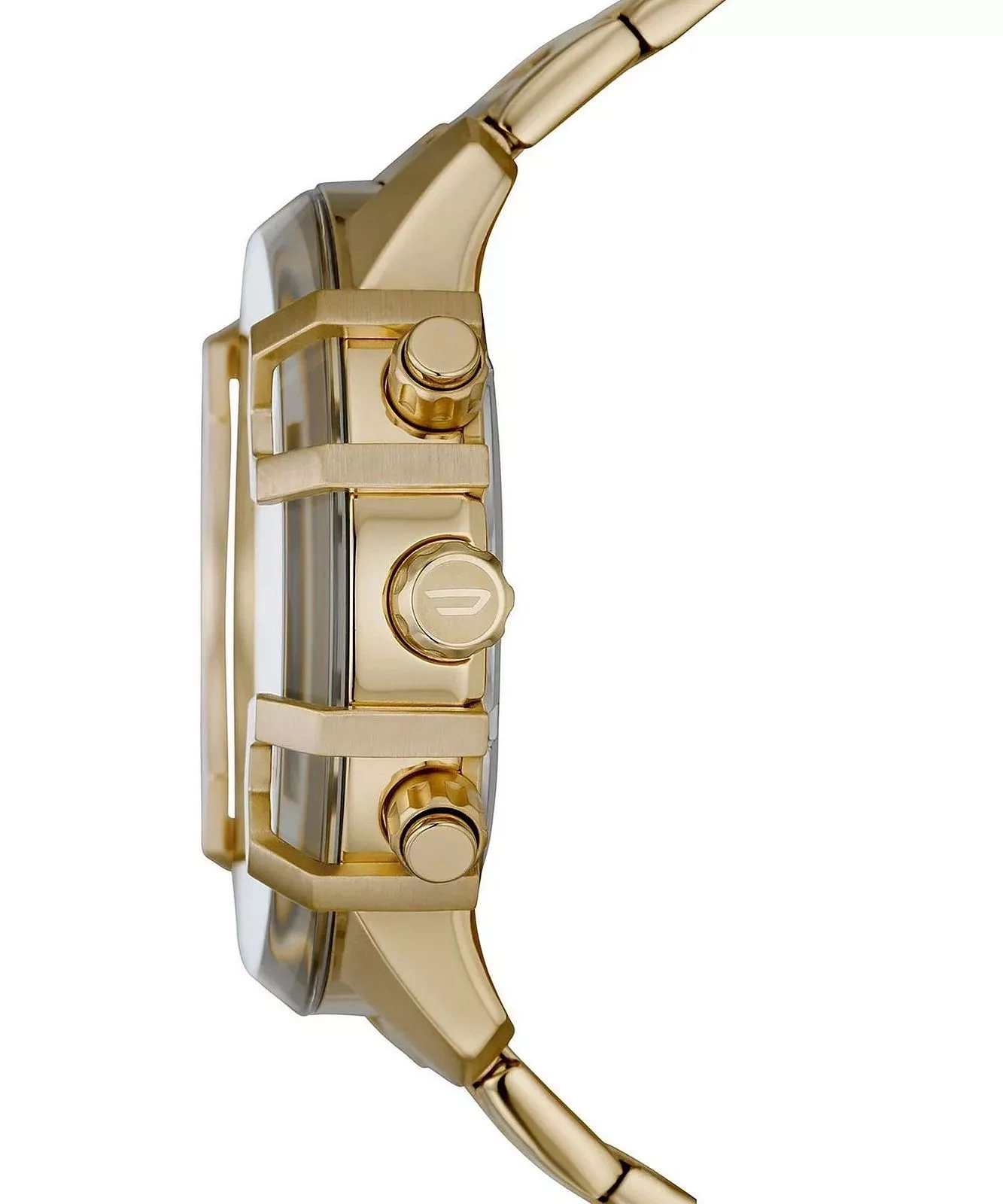 The Diesel Griffed DZ4573 watch is a choice for men who appreciate distinctive gold-tone accents. Its elegant design includes a round envelope and bracelet made of corrosion-resistant stainless steel, as well as an analog dial protected by mineral glass. On the dial, you'll find a date display and sub dials for the chronograph. The crown and complication buttons are located on the left side of the envelope. With a water resistance rating of 50 meters, the watch is splash-proof to protect the quartz mechanism.