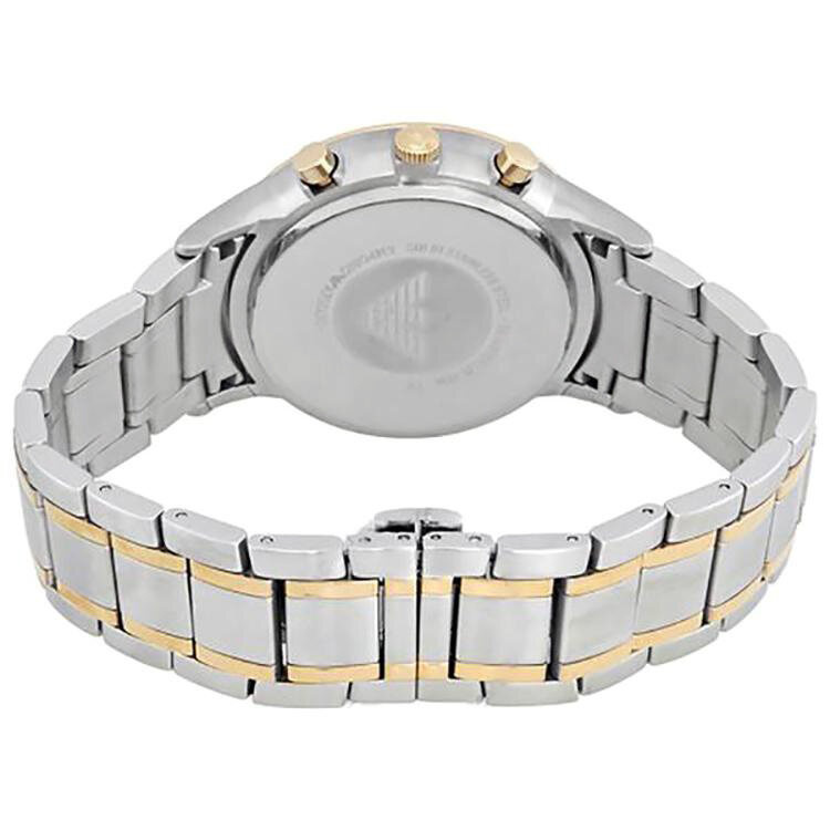 Men's Emporio Armani Renato AR11076 is a classic men's watch, ideal for both elegant attire and casual wear. The envelope and bracelet are made of stainless steel, which guarantees its long-lasting resistance to damage. The silver dial, protected by mineral glass, features gold-colored hour markers, a date pad indicating the day of the month and sub-dials that are chronograph indications.
