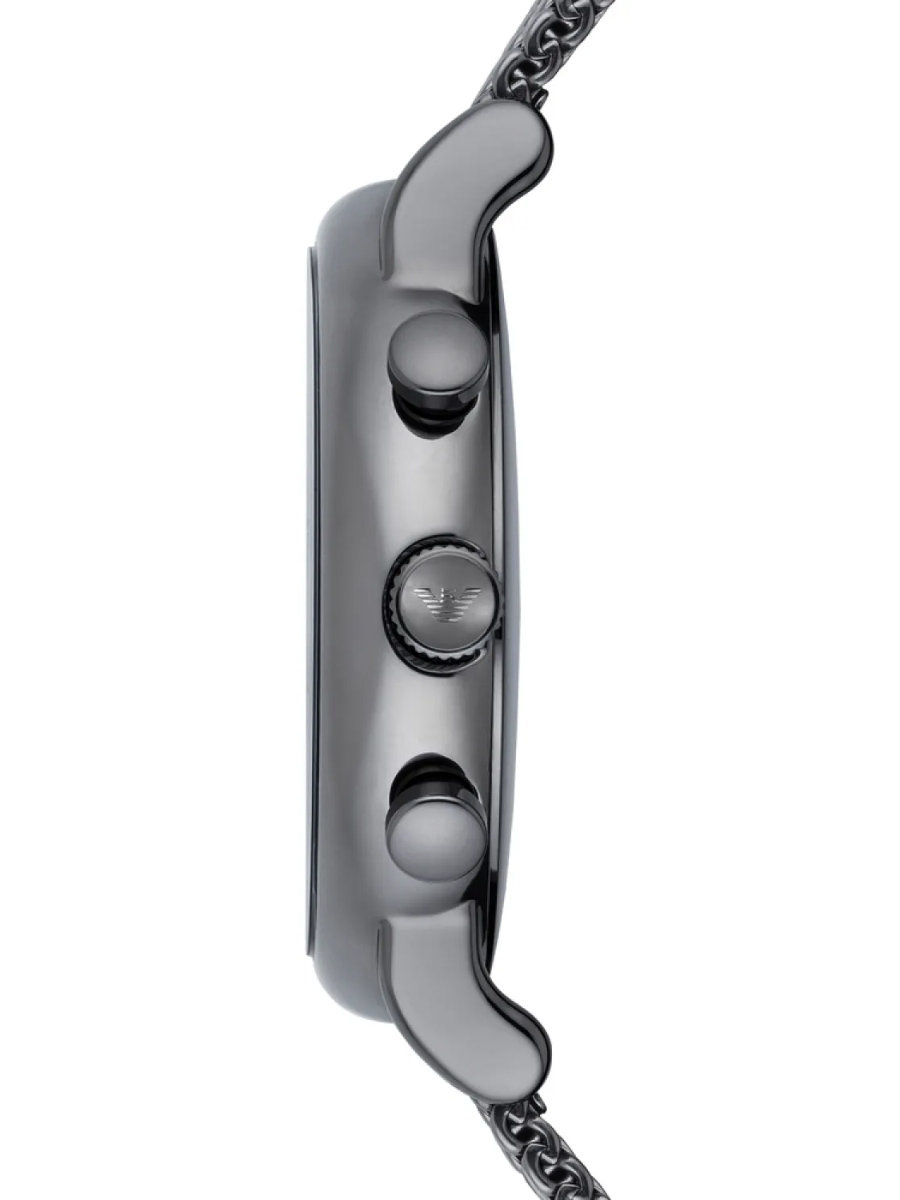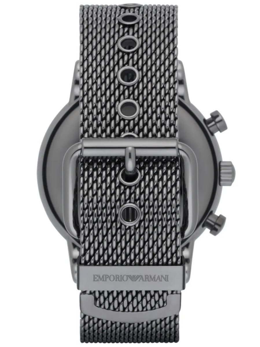 The Emporio Armani AR1979 men's watch from the Luigi series is a stylish men's timepiece, ideal for both elegant attire and casual wear. The mesh bracelet and the envelope are made of stainless steel with a graphite-tone coating. On the dark blue dial, protected by mineral glass, you will find a date pad indicating the day of the month, as well as sub-dials that are chronograph and daylight saving time indications.