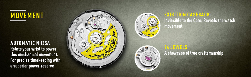 - Movement: Automatic, Seiko NH35A, Japanese, 41h reserve, 24 jewels
