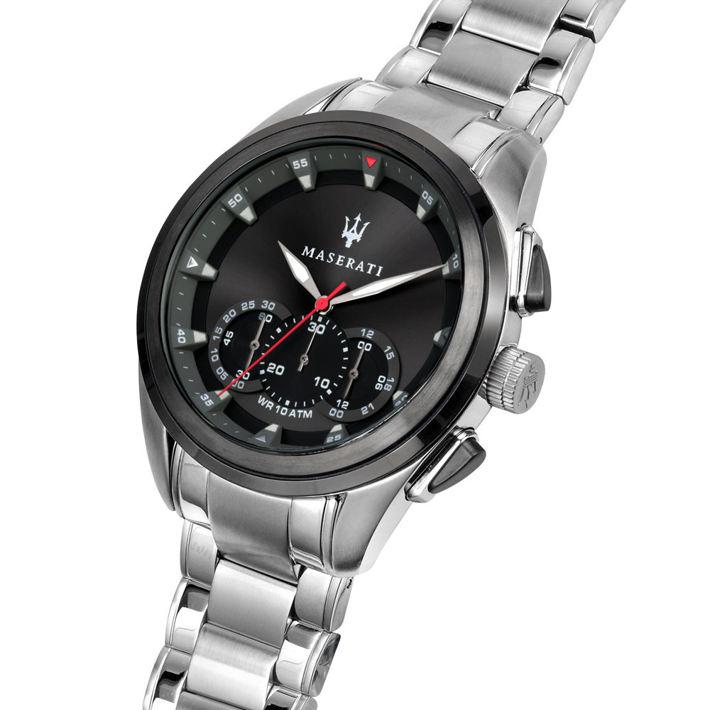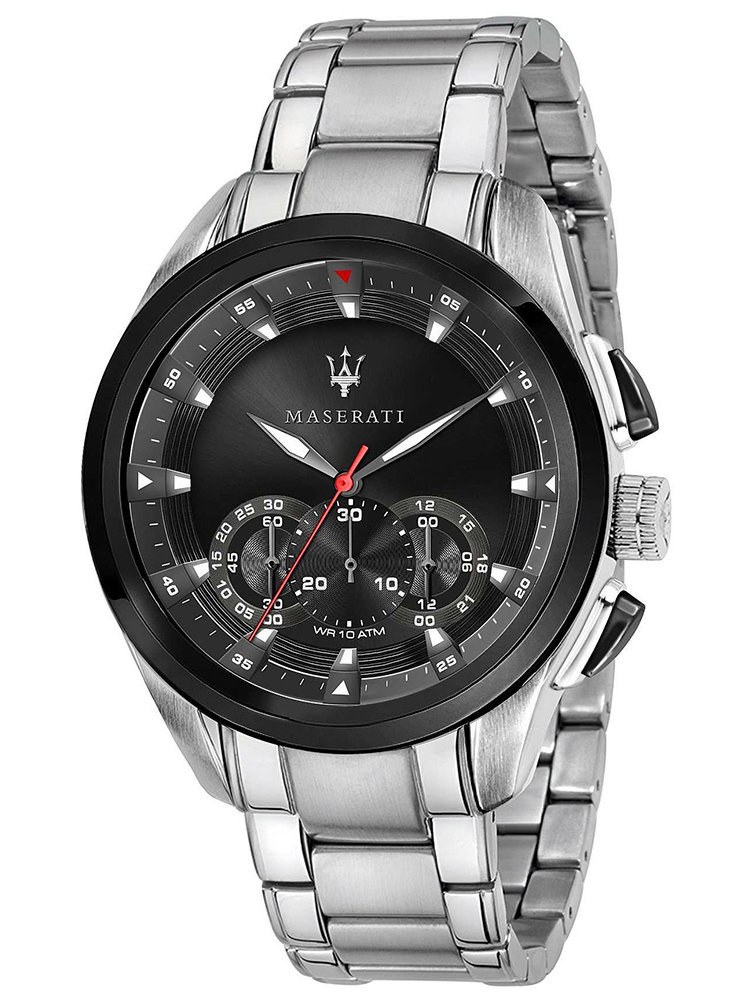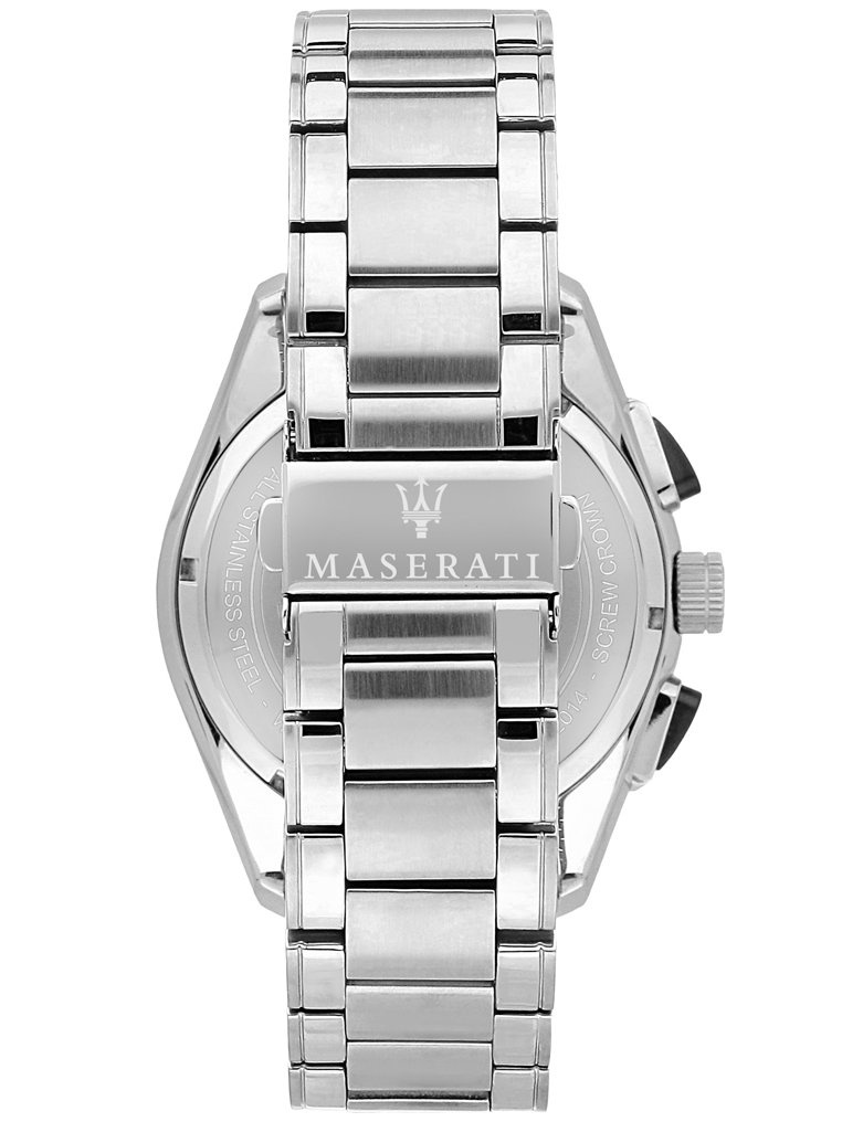 Maserati COMPETIZIONE R8873612015 watch is a classic model that will appeal to any man. Fans of the Italian luxury brand Maserati, as well as those looking for a timepiece for everyday wear, are eagerly reaching for watches from this brand. This watch is made entirely of stainless steel, which is resistant to corrosion. On the black dial protected by mineral glass you will find a chronograph, a seconds hand and a stopwatch. An accurate battery-powered quartz movement is responsible for its reliable operation. The Maserati COMPETIZIONE R8873612015 watch has a water resistance rating of 10 ATM, which means that it is resistant to contact with water.