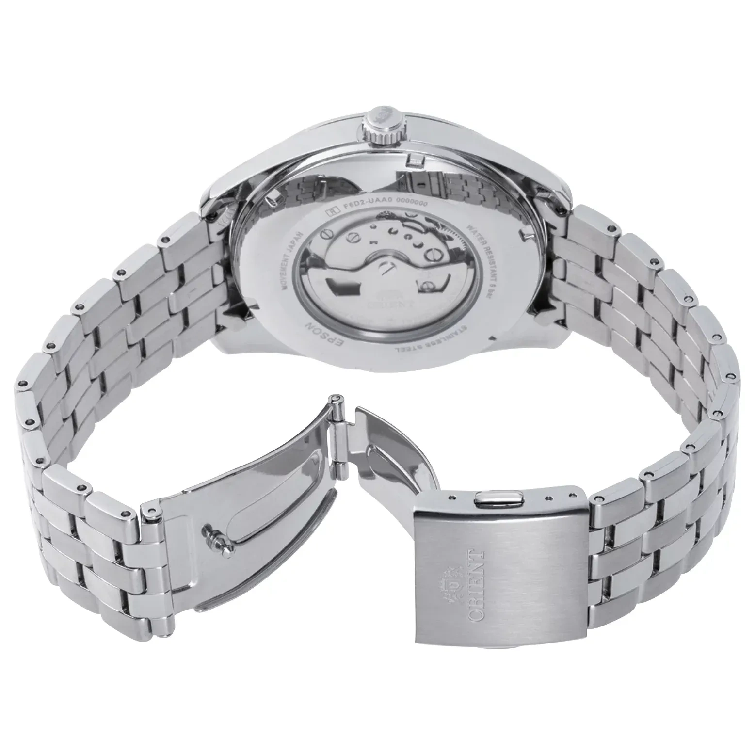 It features a silver-colored envelope and bracelet - both made of high-quality stainless steel. The water resistance class of the timepiece is WR50, which guarantees the watch's watertightness in case of minor splashes. In addition, the model has a screw-down and transparent caseback.