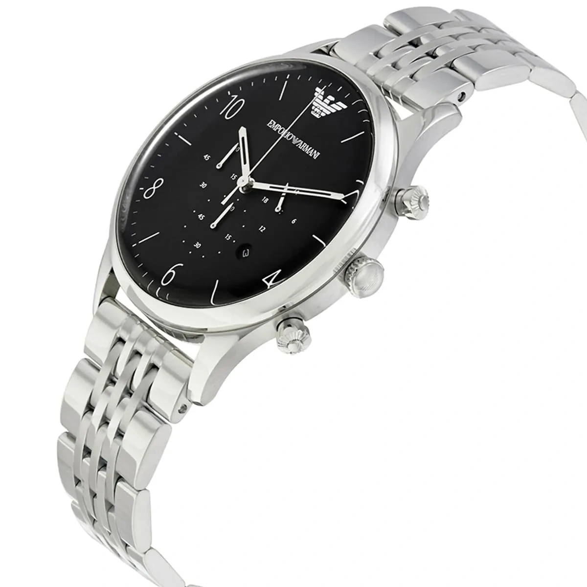Męski zegarek Emporio Armani AR1863 to klasyczny męski zegarek, idealny zarówno do eleganckiego ubioru, jak i do noszenia na co dzień. Bransoletka oraz koperta wykonane zostały ze stali szlachetnej, co zapewnia wieloletnią trwałość. Na czarnej tarczy zabezpieczonej mineralnym szkłem znajdziemy datownik wskazujący dzień miesiąca oraz subtarcze będące wskazaniami chronografu i czasu dobowego. Zegarek Emporio Armani AR1863 trafi w gust każdego mężczyzny i będzie idealnym prezentem na każdą okazję.