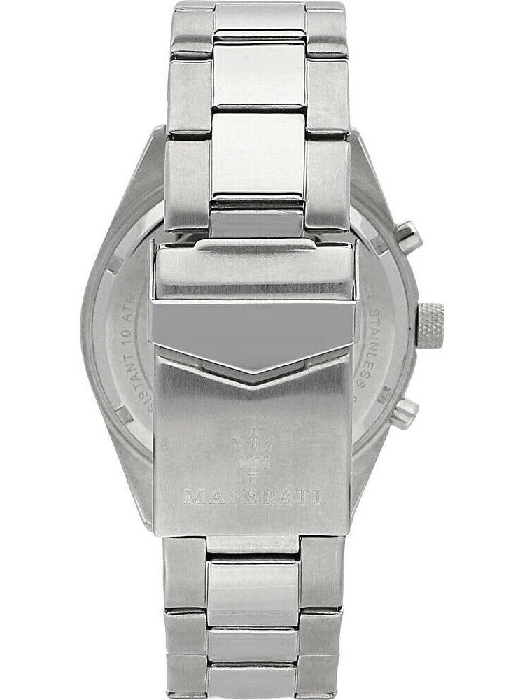 Zegarek Maserati Competizione R8853100014 to elegancki zegarek dla fanów motoryzacji i nie tylko. Na czarnej tarczy zabezpieczonej mineralnym szkłem znajdziemy subtarcze będące wskazaniami dnia tygodnia, dnia miesiąca i czasu dobowego.