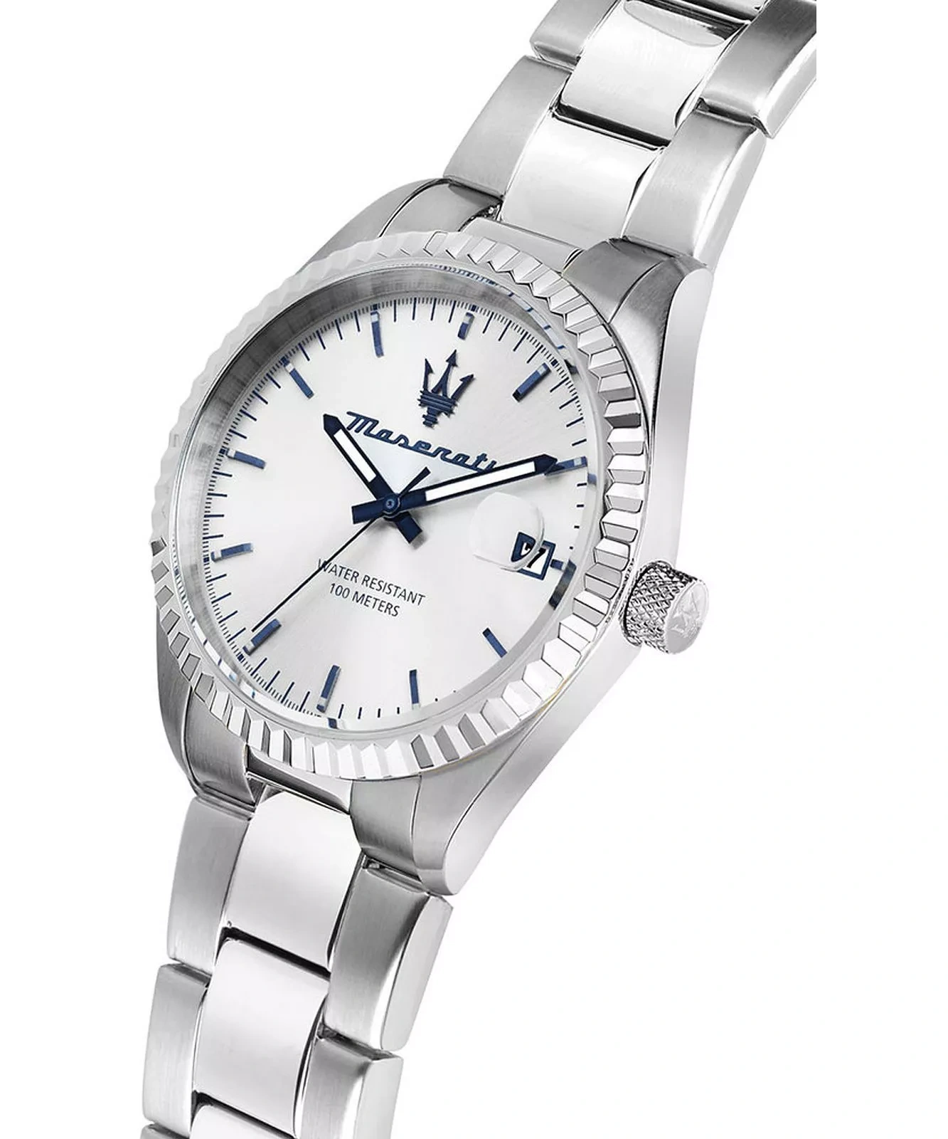 ZegarekMaserati COMPETIZIONE R8853100045 to klasyczny model, który przypadnie do gustu każdemu mężczyźnie. Po zegarki tej marki chętnie sięgają fani włoskiej, luksusowej markiMaserati, jak i osoby poszukujące czasomierza do noszenia na co dzień. Zegarek ten został wykonany w całości ze stali szlachetnej, która jest odporna na korozję. Srebrna tarcza z datownikiem przykryta jest szkiełkiem mineralnym. Za niezawodne działanie urządzenia odpowiada dokładny mechanizm kwarcowy zasilany baterią. ZegarekMaserati COMPETIZIONE R8853100045posiada klasę wodoszczelności 10 ATM, co oznacza, że jest odporny na kontakt z wodą.