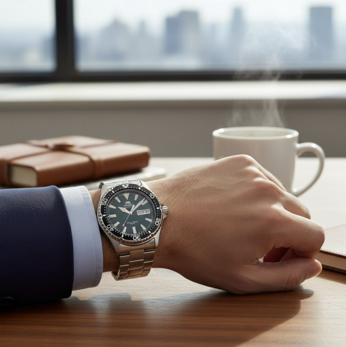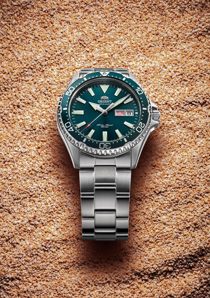 Zegarek Orient Kamasu RA-AA0004E19B to klasyczny elegancki zegarek. Czasomierz działa w oparciu o niesłychanie dokładny japoński mechanizm z automatycznym naciągiem. Na zielonej tarczy chronionej mineralnym szkłem umieszczono datowniki