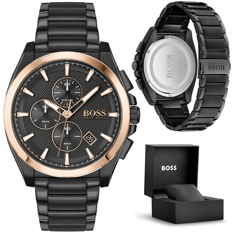 Hugo Boss 1513885 Grandmaster men's watch is an option for men who are looking for a functional yet elegant watch. The model of this watch has a black bracelet and an envelope - both made of stainless steel. On the black heavily expanded dial, protected by mineral glass, we can find a date display indicating the day of the month, as well as sub-dials that are indications of chronograph and daylight saving time, and a stopwatch, which is operated by side buttons. Water resistance at the level of 5ATM, so you can bathe with the watch, but you must not swim in it. The biggest asset of this model is the size of the envelope, it looks great on a man's wrist.