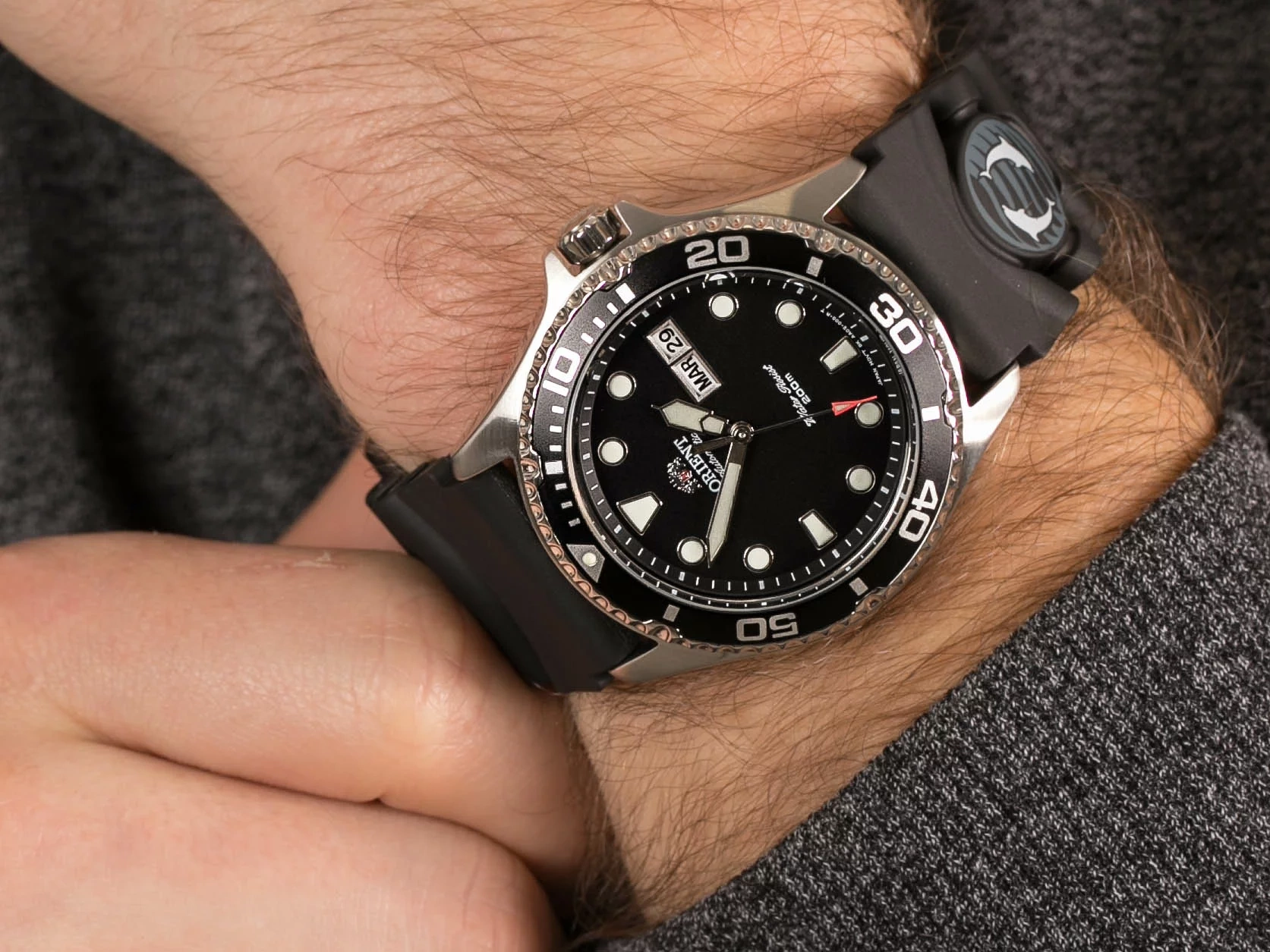 Model ten posiada srebrną kopertę wykonaną z wysokiej jakości stali nierdzewnej oraz pasek gumowy w kolorze czarnym. Klasa wodoszczelności czasomierza to WR200, co gwarantuje szczelność zegarka np. podczas pływania. Ponadto model posiada powłokę luminescencyjną, zapewniającą długotrwałe świecenie w ciemności po krótkim naświetleniu, oraz zakręcany dekiel.