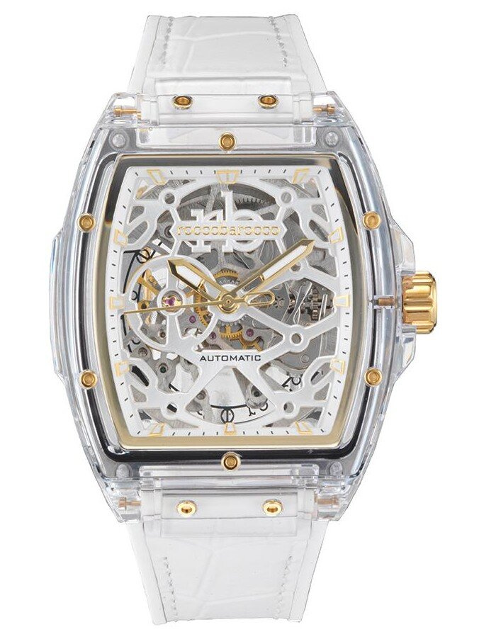 Zegarek modelu RB.3802M-01 RoccoBarocco to szczyt automatycznego designu, łączący precyzję z nowoczesnym stylem. Wykonany z najwyższej jakości materiałów, zegarek emanuje luksusem i perfekcyjnym wykonaniem. Automatyczny mechanizm tego zegarka nie tylko utrzymuje nieskazitelną dokładność czasu, ale także dodaje mu subtelnego uroku. Bez potrzeby baterii, zegarek RB.3802M-01 zasilany jest energią ruchu, co sprawia, że noszenie go to czysta przyjemność. Przezroczyste tworzywo koperty tworzy solidną i elegancką ramę dla wyjątkowej tarczy. Zestawiona z delikatnym, skórzanym paskiem, tworzy idealną harmonię pomiędzy nowoczesnym designem a klasyczną elegancją. Klarowne oznaczenia godzin oraz precyzyjne wskazówki sprawiają, że odczyt czasu staje się łatwy i przyjemny. Zegarek RB.3802M-01 RoccoBarocco to nie tylko narzędzie mierzące czas, to także wyraz osobistego stylu i elegancji. Automatyczna perfekcja dla tych, którzy cenią nie tylko funkcjonalność, ale również niepowtarzalny design.