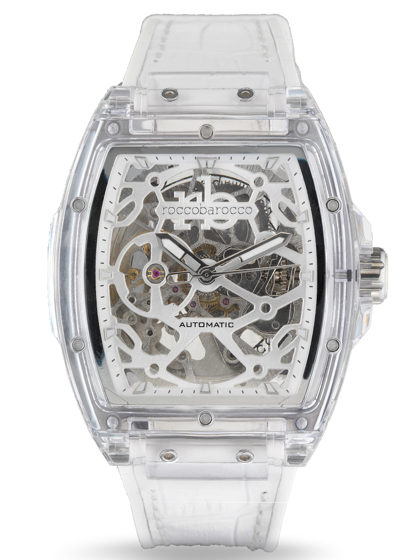 Zegarek modelu RB.3802M-02 RoccoBarocco to szczyt automatycznego designu, łączący precyzję z nowoczesnym stylem. Wykonany z najwyższej jakości materiałów, zegarek emanuje luksusem i perfekcyjnym wykonaniem. Automatyczny mechanizm tego zegarka nie tylko utrzymuje nieskazitelną dokładność czasu, ale także dodaje mu subtelnego uroku. Bez potrzeby baterii, zegarek RB.3802M-02 zasilany jest energią ruchu, co sprawia, że noszenie go to czysta przyjemność. Przezroczyste tworzywo koperty tworzy solidną i elegancką ramę dla wyjątkowej tarczy. Zestawiona z delikatnym, skórzanym paskiem, tworzy idealną harmonię pomiędzy nowoczesnym designem a klasyczną elegancją. Klarowne oznaczenia godzin oraz precyzyjne wskazówki sprawiają, że odczyt czasu staje się łatwy i przyjemny. Zegarek RB.3802M-02 RoccoBarocco to nie tylko narzędzie mierzące czas, to także wyraz osobistego stylu i elegancji. Automatyczna perfekcja dla tych, którzy cenią nie tylko funkcjonalność, ale również niepowtarzalny design.