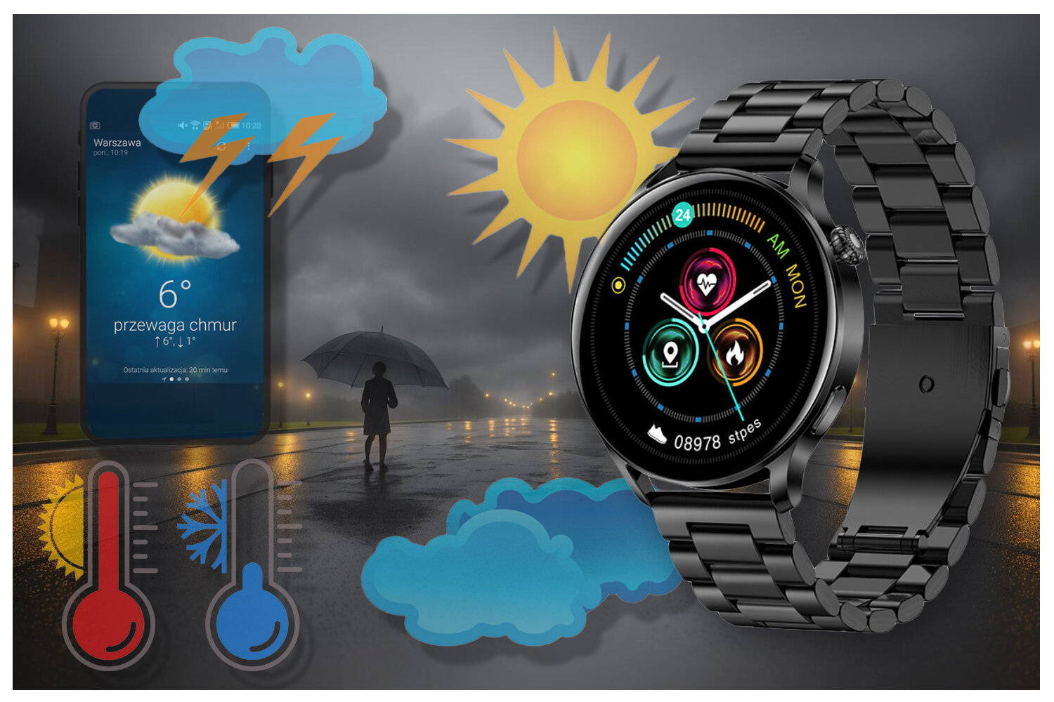 The smartwatch, when connected with the app, displays weather data. Now all it takes is one look at the smartwatch and you already know what the weather will be like in the near future. Thanks to the weather on the smartwatch, you can better plan your activities and dress appropriately for the surrounding weather!