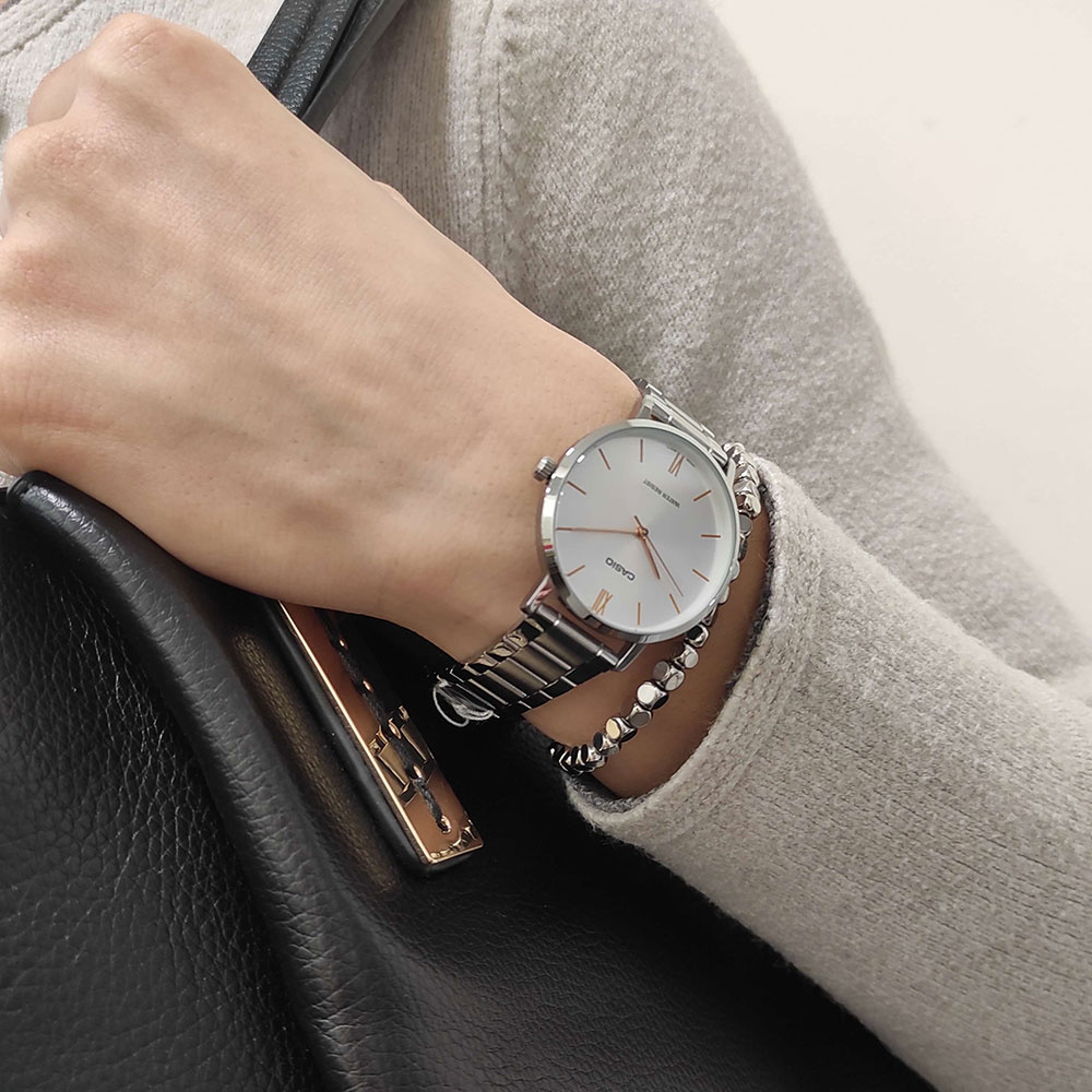 The silver bracelet, which matches the color of the envelope, is not only comfortable, but also easy to adjust, allowing it to fit perfectly on the delicate wrist. Its shiny surface adds extra sparkle to the watch, making it the perfect accessory for both everyday and more formal outfits. The quartz mechanism guarantees precise operation, and the long-life battery makes the watch a reliable everyday companion.