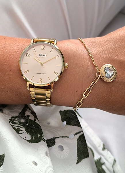 CASIO LTP-VT01G-4B women's watch is an elegant and subtle timepiece that will perfectly highlight the style and femininity of its owner. This model impresses with its minimalist design, which combines delicacy and practicality, making it an ideal accessory for everyday wear and special occasions. The small-size gold envelope, made of durable stainless steel, adds glamour and lightness to the watch, while ensuring comfortable all-day wear. Its subtle, shiny appearance makes the watch a perfect match with jewelry, emphasizing the elegance of any styling.