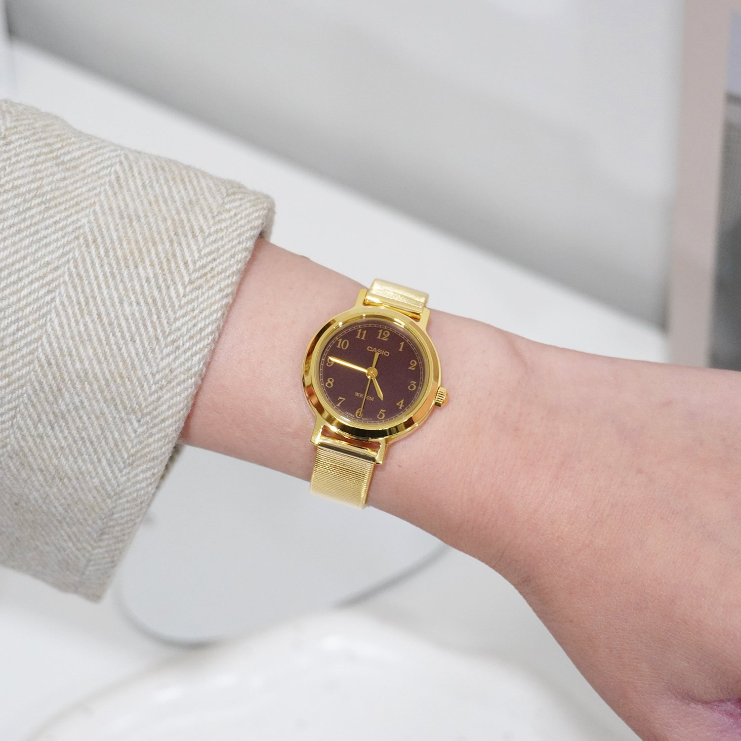 Zegarek damski Casio LTP-B170G-5B to elegancki i funkcjonalny model, który doda klasy każdej stylizacji. Jego subtelny design, z tarczą w kolorze brązowym i złotą bransoletą, doskonale wpisuje się w wymagania współczesnych kobiet, które cenią sobie połączenie stylu z niezawodnością.