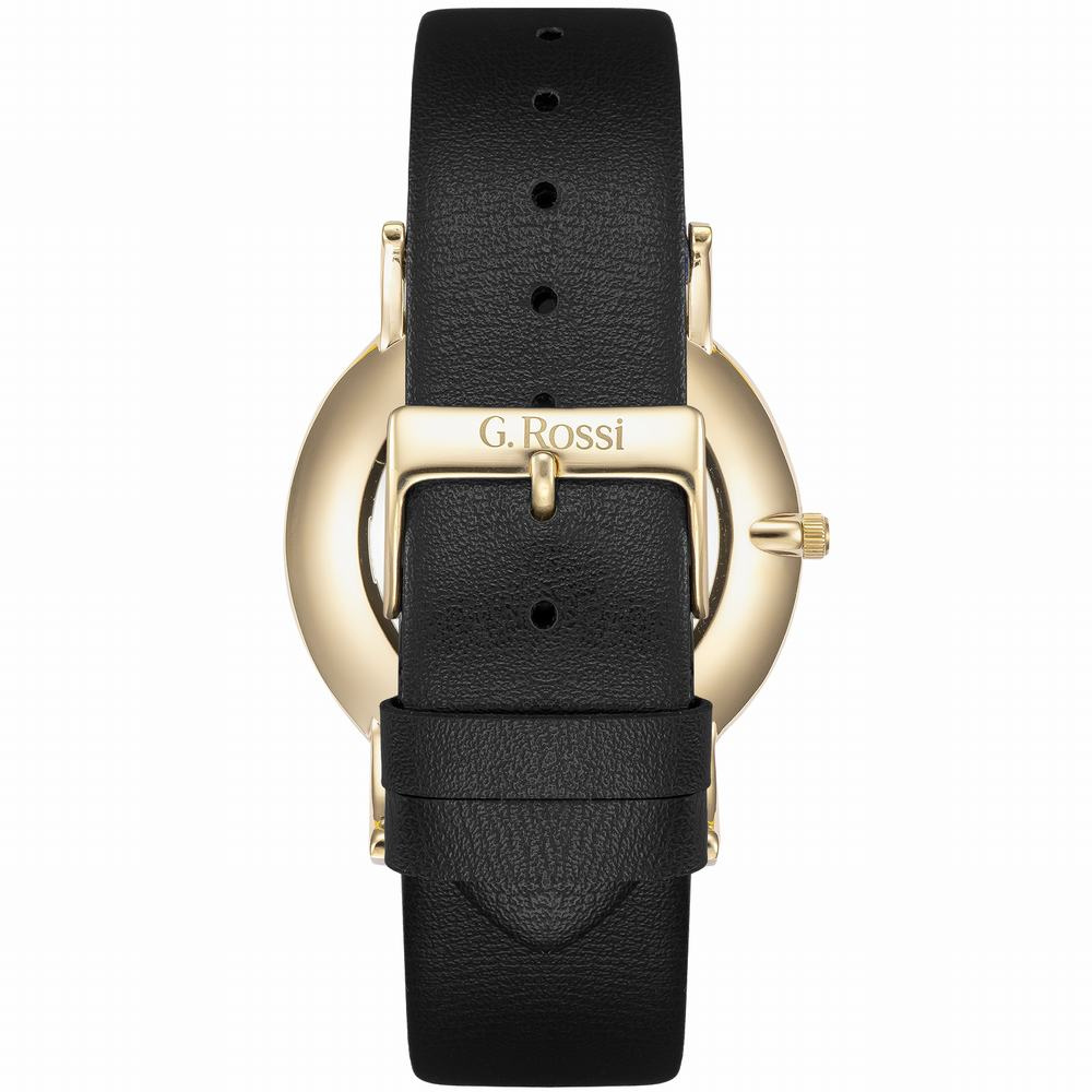 The G. ROSSI G.R737A-1A2-2 women's watch is an elegant everyday choice that combines subtle femininity with exceptional style. With a black leather strap, gold-tone envelope and black dial, it looks very chic. The gold-colored indexes on the dial add a touch of glamour and finesse. The watch has WR30 water resistance, which ensures comfort in everyday situations. An ideal choice for women who appreciate elegance, but who also seek practicality in their accessories.