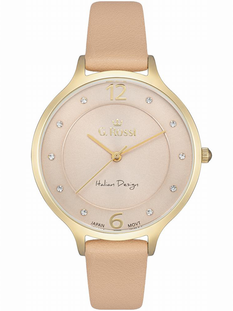 Zegarek damski G. ROSSI G.R10411A-2B2 to elegancka propozycja na co dzień, która łączy subtelną kobiecość z wyjątkowym stylem. Z beżowym paskiem ze skóry, kopertą w złotym odcieniu i beżową tarczą, prezentuje się bardzo szykownie. Indeksy na tarczy to delikatne kryształki, które dodają mu blasku i finezji. Zegarek posiada wodoodporność na poziomie WR30, co zapewnia komfort użytkowania w codziennych sytuacjach. Idealny wybór dla kobiet ceniących elegancję, ale szukających także praktyczności w swoich dodatkach.