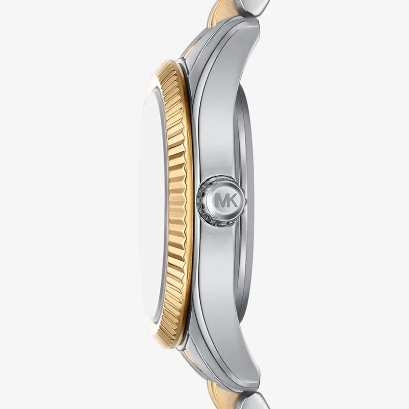 Zegarek Michael Kors MK4815 Lexington to bardzo efektowny i kobiecy dodatek zarówno do sportowych jak i casualowych stylizacji. Tarcza zegarka zdobiona cyrkoniami - całość zachowana w kolorze różowego złota. Koperta i bransoleta wykonana ze stali szlachetnej w kolorze srebrnym/złotym. Zastosowane szkło mineralne, które gwarantuję ochronę przed pęknięciami. Zegarek posiada szczelność na poziomie 50 m co oznacza, że jest odporny na zachlapanie np. podczas mycia rąk.
