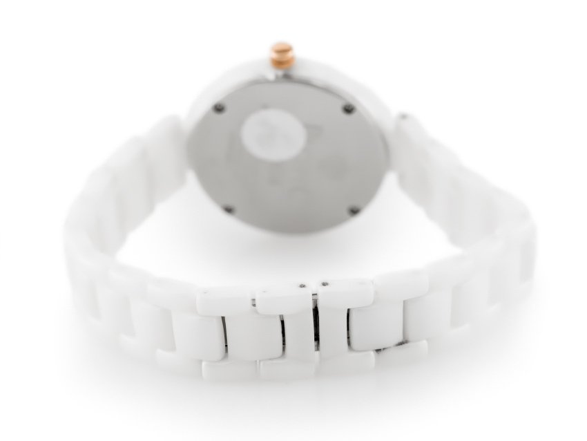 Color scheme: bracelet and envelope in white, dial in pearl, ring and index in rosegold
