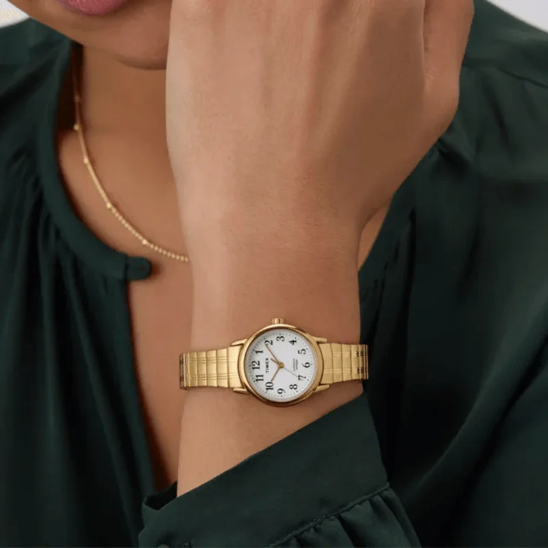 Elegancki damski zegarek TIMEX EASY READER TW2W52400 pasuje idealnie do codziennych stylizacji, jak i na bardziej uroczyste okazje. Tarcza jest w kolorze białym z czarnymi cyframi co ułatwia odczyt godziny chroniona mineralnym szkłem. Model ten posiada złotą kopertę oraz brnsoletę wykonaną z wysokiej jakości stali szlachetnej. Klasa wodoszczelności zegarka to WR30.